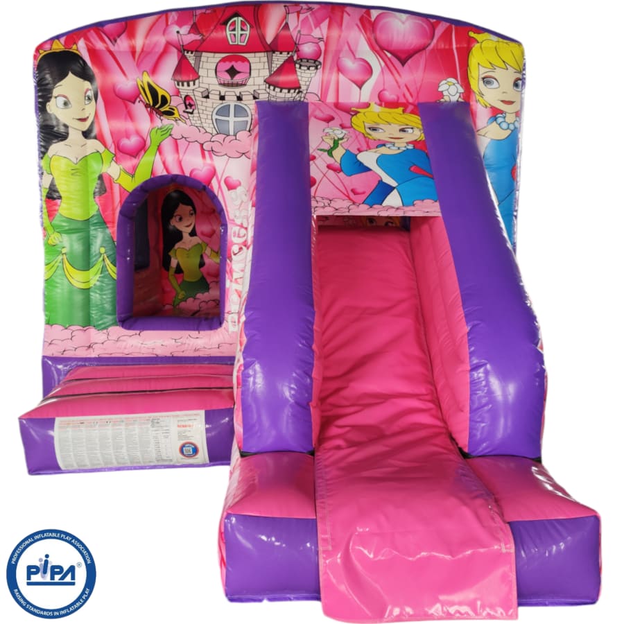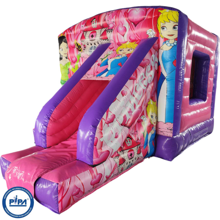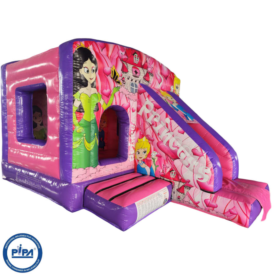 The 12ft x 17ft Bouncy castle with slide is a fantastic new addition that can be added to your fleet. The bouncy castle with slide combines 2 of the most popular items in one extraordinary inflatable where space is at a premium. The bouncy castle with slide combo is the perfect combination slide for any party, venue or occasion and is ideal for all age groups. This brightly coloured piece of equipment provides the perfect bouncing area to bounce along with friends, whilst the slide provides entertainment for the rest of the guests at the same time and certainly won't break the bank.