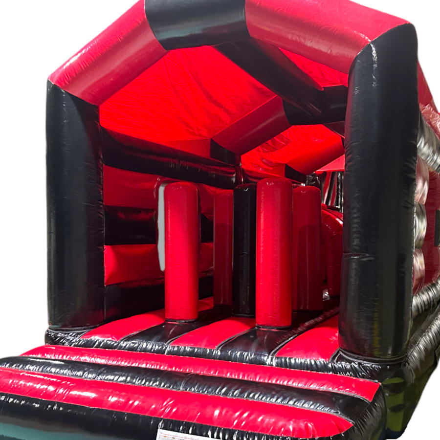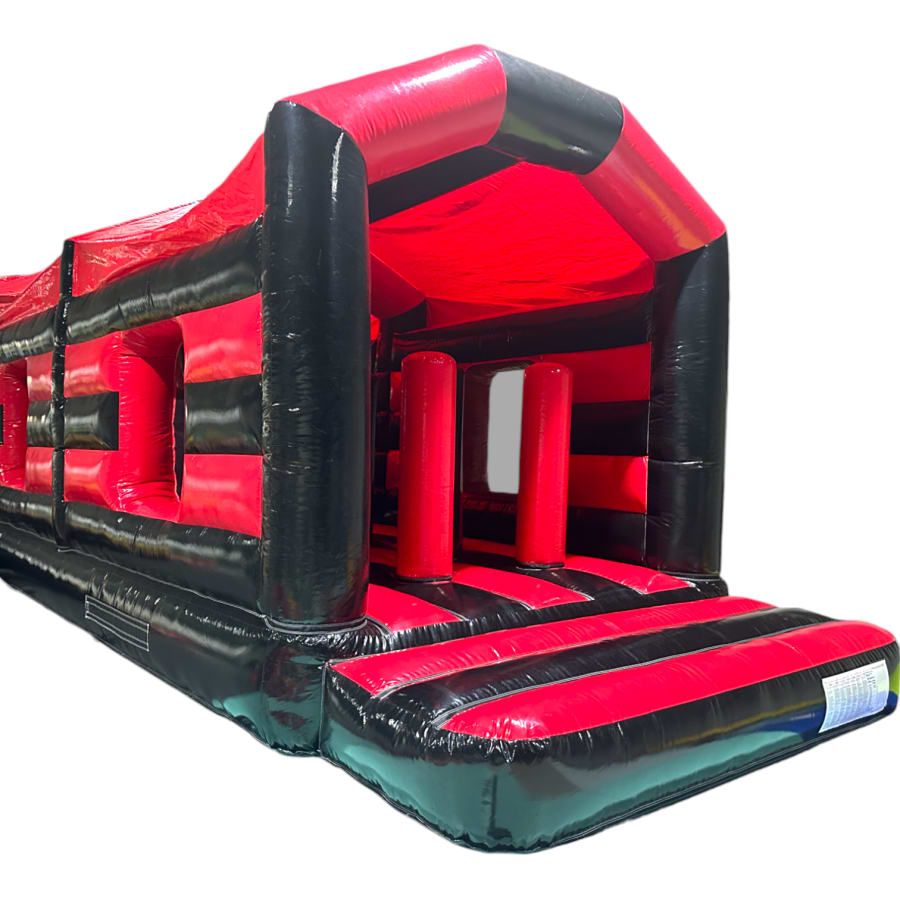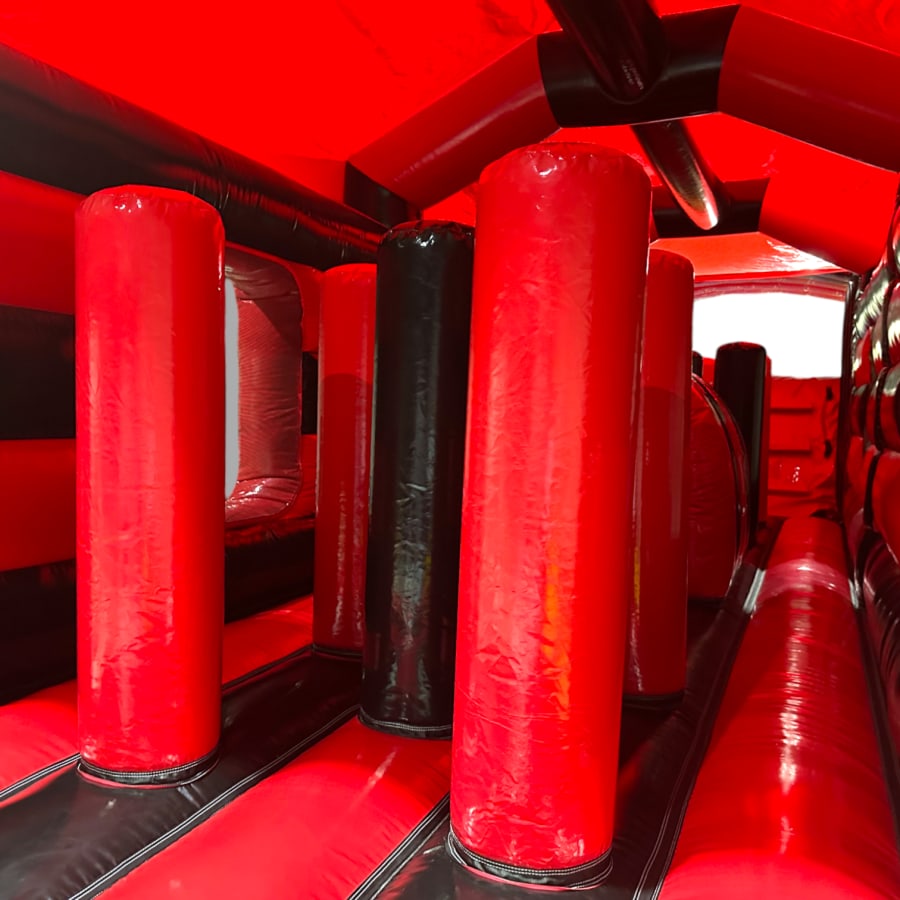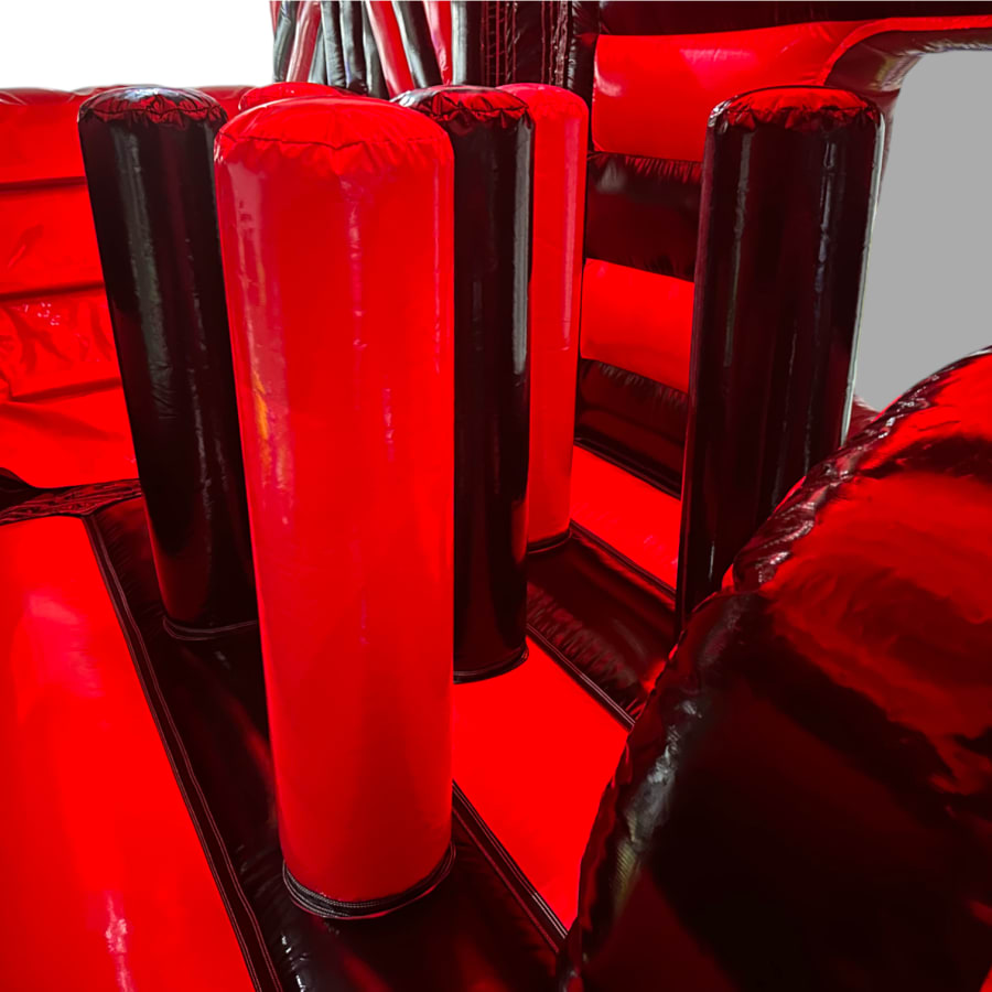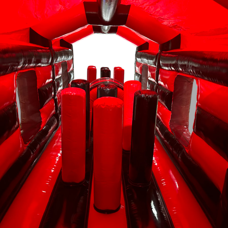 The slide and obstacle section are 100% compliant as a stand-alone inflatable section for hire and are fully extendable. This allows for customization and flexibility in setting up the obstacle course to fit the specific needs and requirements of your event. The latest artwork theme is absolutely fantastic and is part of the high adrenaline games range, making this inflatable obstacle course the perfect choice for your event.