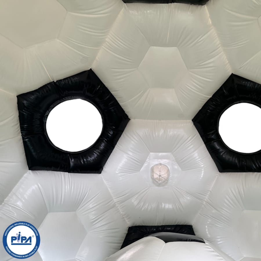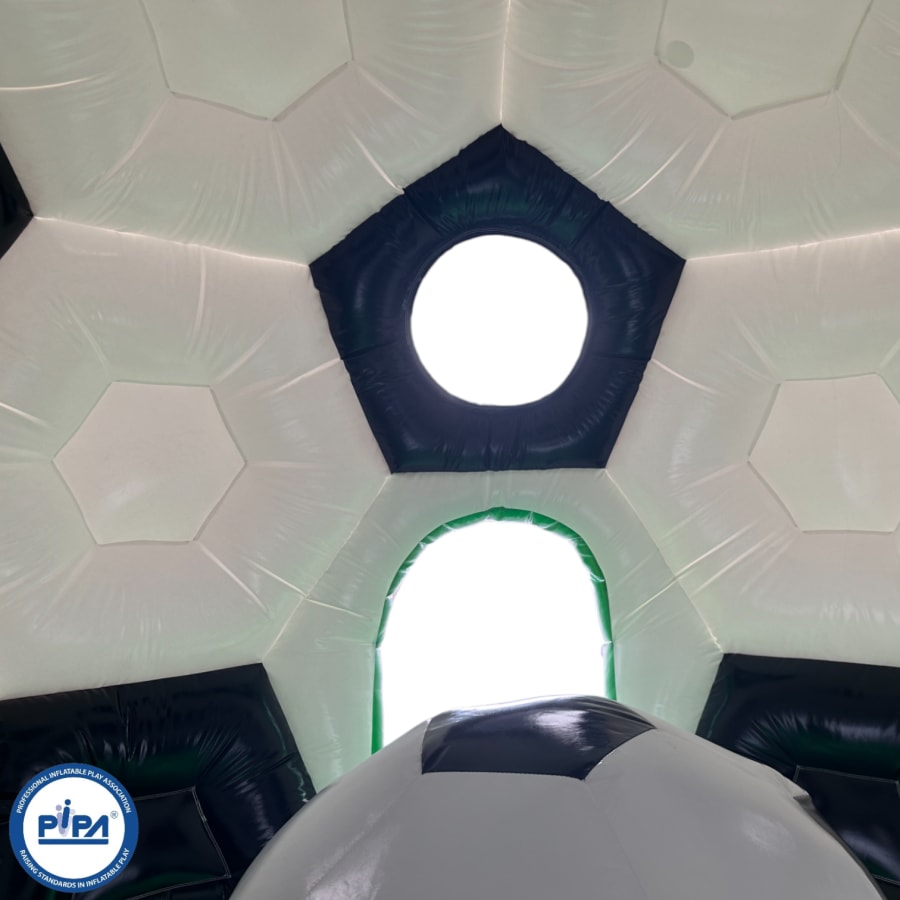 Say hello to the all new football themed 3D disco dome from Betterbounce Direct. The disco dome has been a BB classic for almost 30 years. In 2016 we went 3D, Giving it a new double skin and allowing it to run from 1 single blower to create the product you see today. This dome is already going down an absolute storm with those who just want to party the night away inside an inflatable disco! The Dome comes complete with a speaker pocket at the back to safety hide the music system away from small fingers yet still bellows the sound out into the dome.