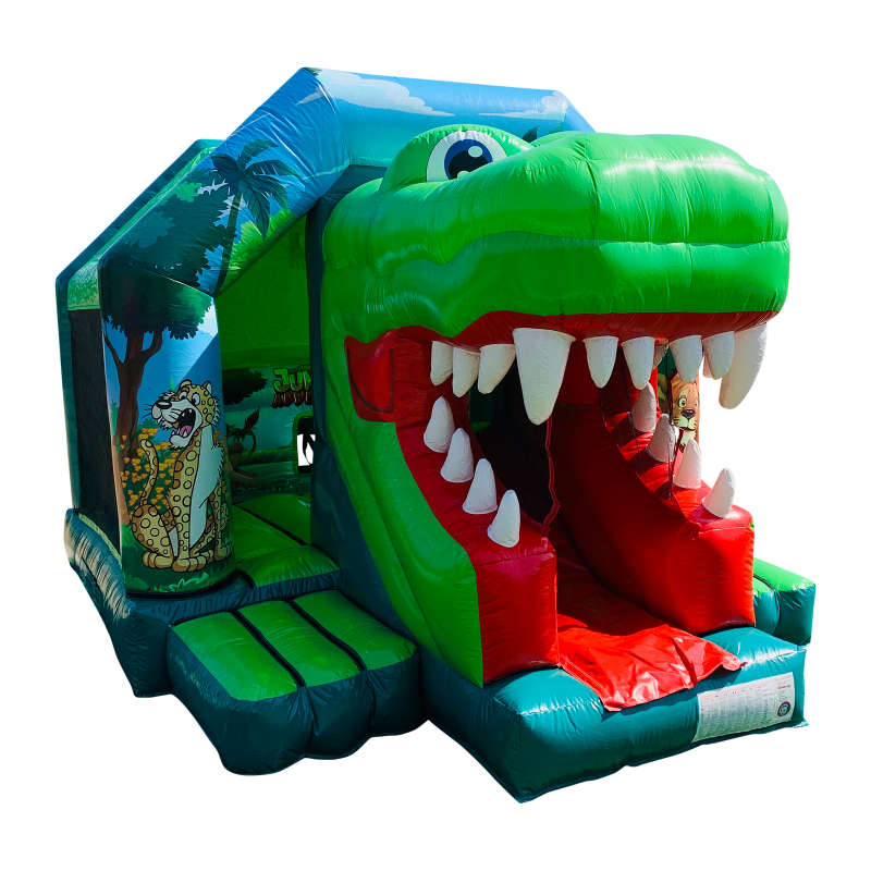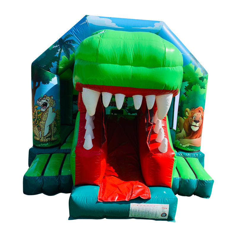 The bouncy castle with slide combines 2 of the most popular items we manufacture in one extraordinary inflatable where space is at a premium. The bouncy castle with slide combo is the perfect combination slide for any party, venue or occasion and is ideal for all age groups. This brightly coloured piece of equipment provides the perfect bouncing area to bounce along with friends, whilst the slide provides entertainment for the rest of the guests at the same time and certainly won't break the bank for the creativity it brings. This will be a battery powered design as standard but can be pre-wired upon request.