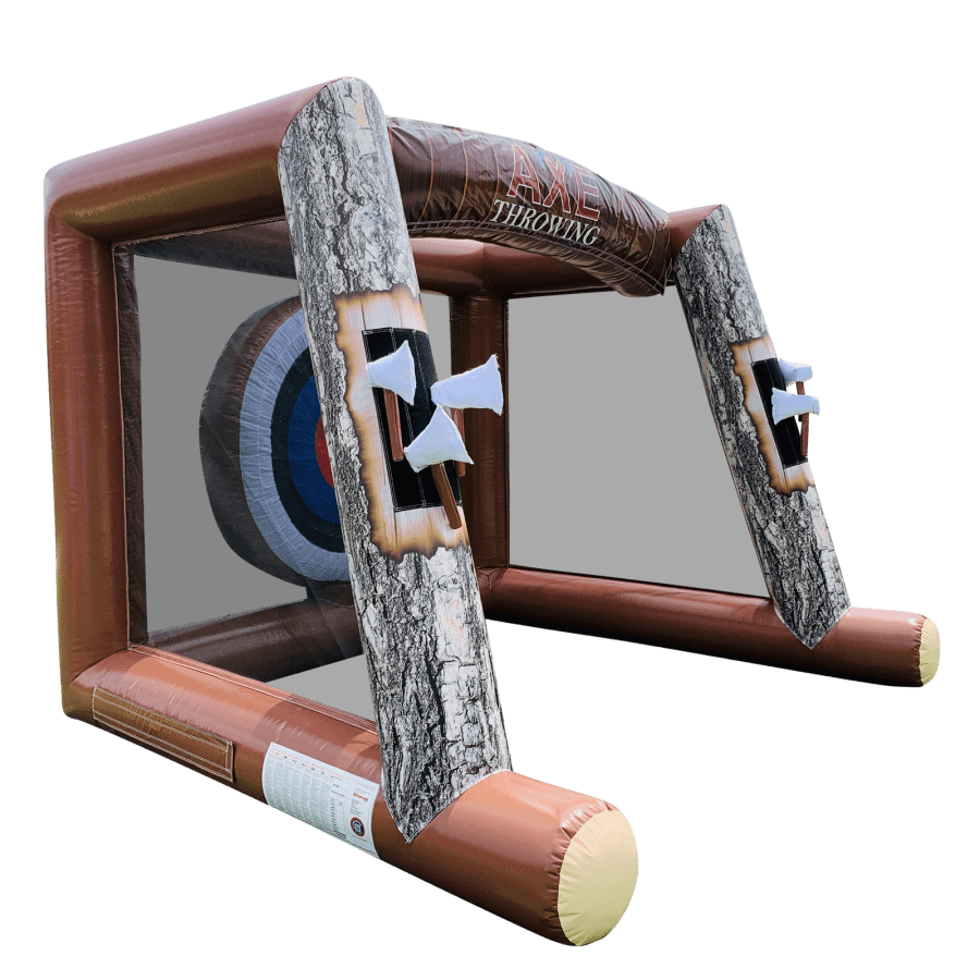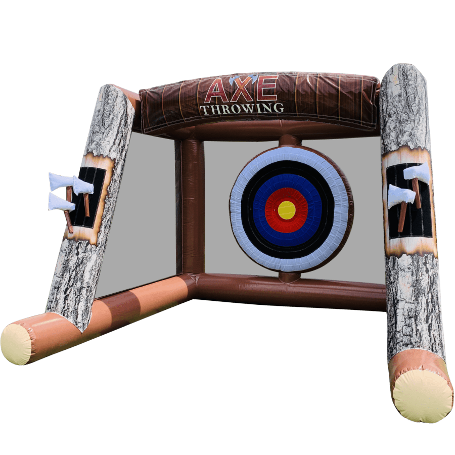 The axe throwing game is a double bubble of trouble and accommodates both a set of throwing axes and a set of screw on velcro dart tips,making the game truly versatile and cover all age range and bases.