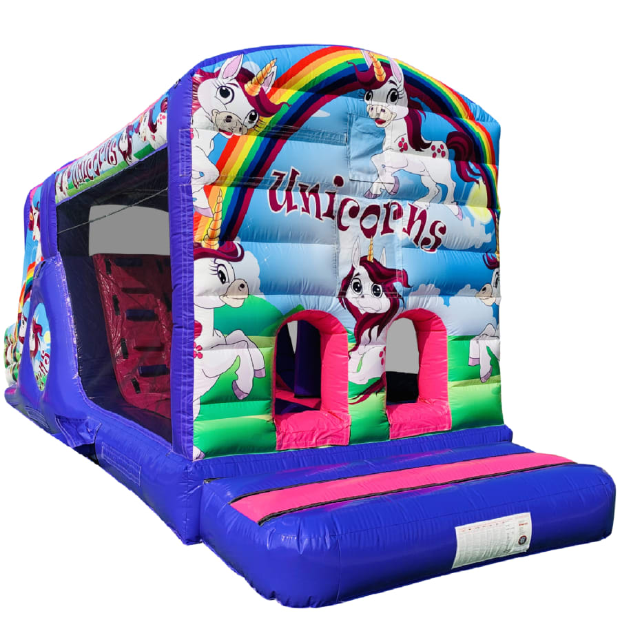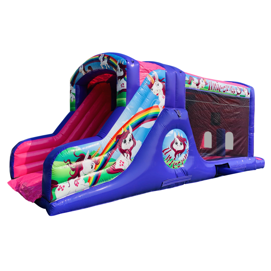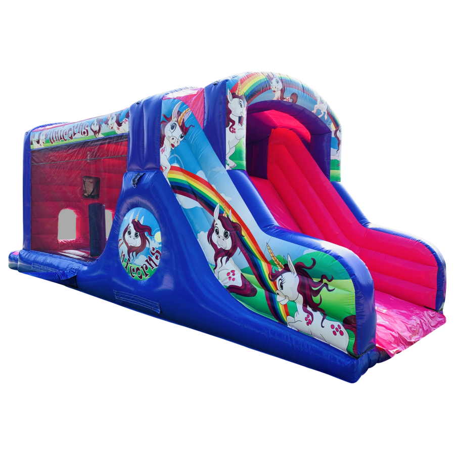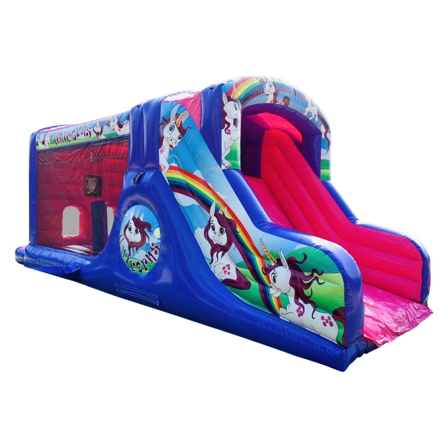 Make your child's day with this modern obstacle section. The inflatable obstacle course offers a safe entrance way with full theming, followed by a series of biff and bash pillars, cool chill out area in the middle, steep ladder climb and a crazy slide out of the end. The obstacle course is the perfect choice for your little one's birthday party school gala, summer fete and works fantastically as a stand alone item or as part of a larger package of matching inflatables.