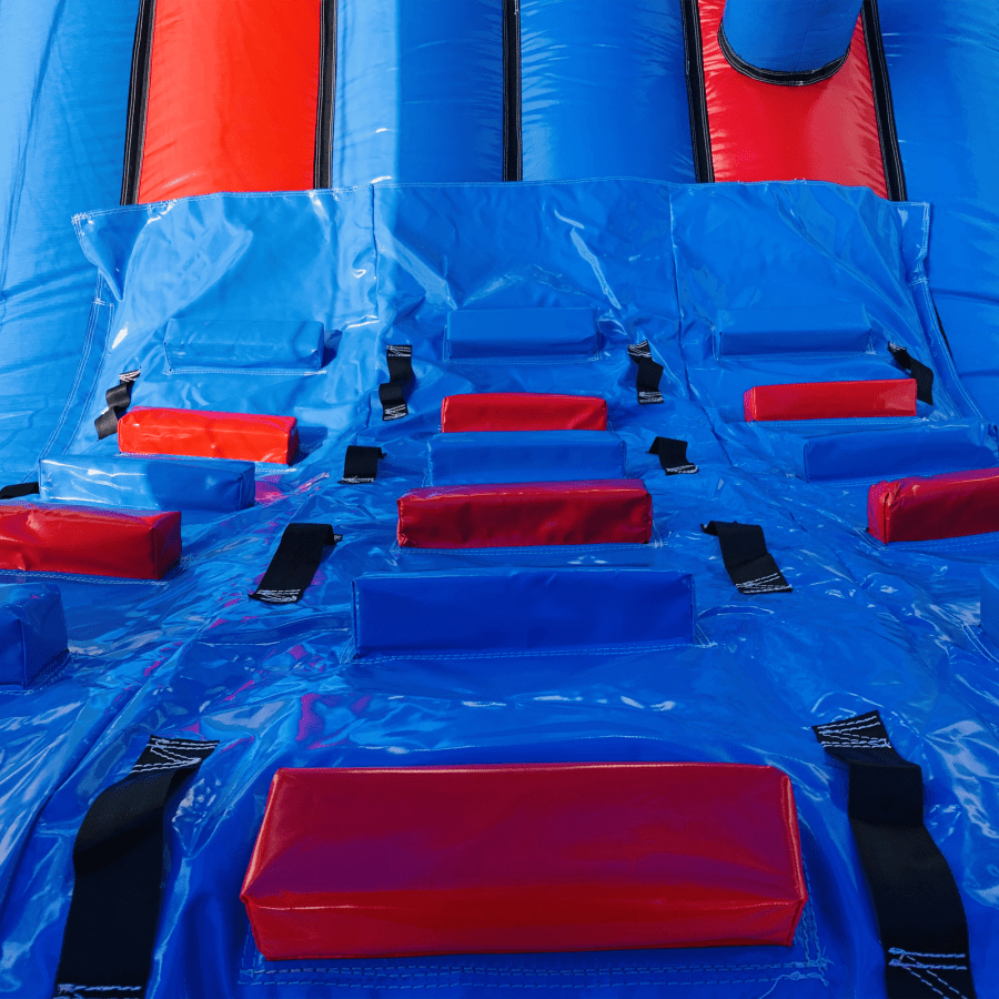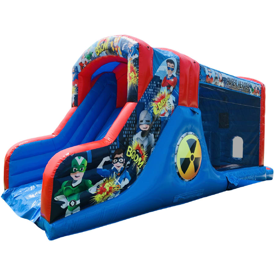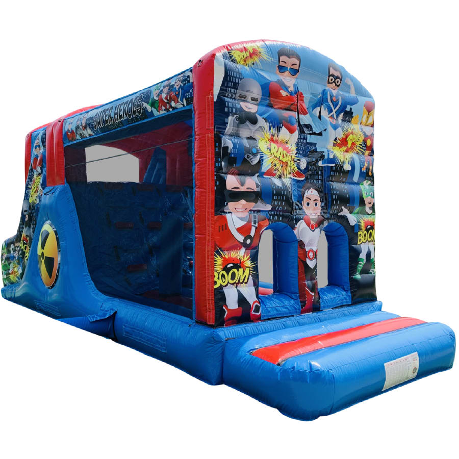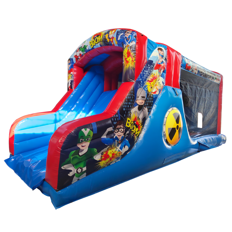 Make your child's day with this modern obstacle section. The inflatable obstacle course offers a safe entrance way with full theming, followed by a series of biff and bash pillars, cool chill out area in the middle, steep ladder climb and a crazy slide out of the end. The obstacle course is the perfect choice for your little one's birthday party school gala, summer fete and works fantastically as a stand alone item or as part of a larger package of matching inflatables.