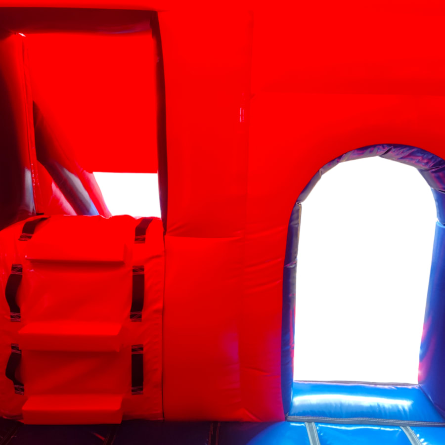 The 12ft x 17ft Bouncy castle with slide is a fantastic new addition that can be added to your fleet. The bouncy castle with slide combines 2 of the most popular items in one extraordinary inflatable where space is at a premium. The bouncy castle with slide combo is the perfect combination slide for any party, venue or occasion and is ideal for all age groups. This brightly coloured piece of equipment provides the perfect bouncing area to bounce along with friends, whilst the slide provides entertainment for the rest of the guests at the same time and certainly won't break the bank.