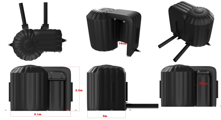 The underside is fitted with large zips to house rope lighting systems if required and it runs on just 1" waterguage meaning the small and quiet yellow fans are idea for distribution.
