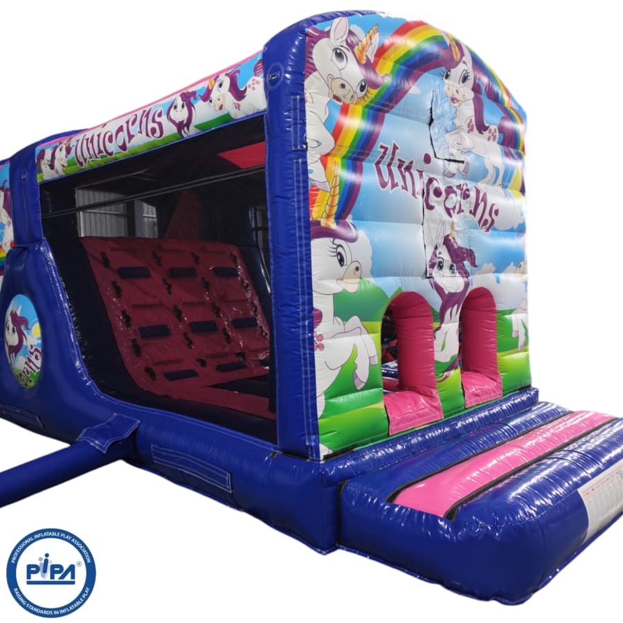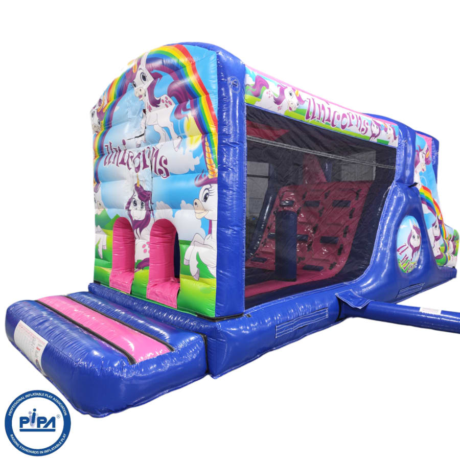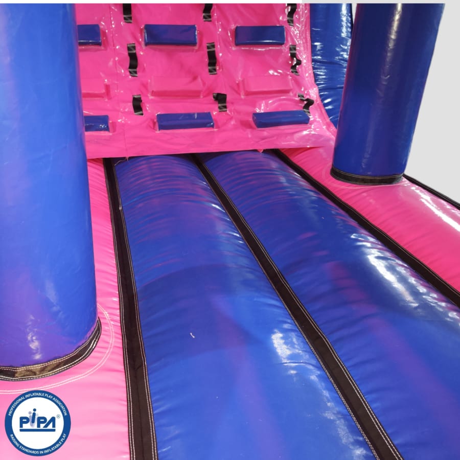 Make your child's day with this modern obstacle section. The inflatable obstacle course offers a safe entrance way with full theming, followed by a series of biff and bash pillars, cool chill out area in the middle, steep ladder climb and a crazy slide out of the end. The obstacle course is the perfect choice for your little one's birthday party school gala, summer fete and works fantastically as a stand alone item or as part of a larger package of matching inflatables.
