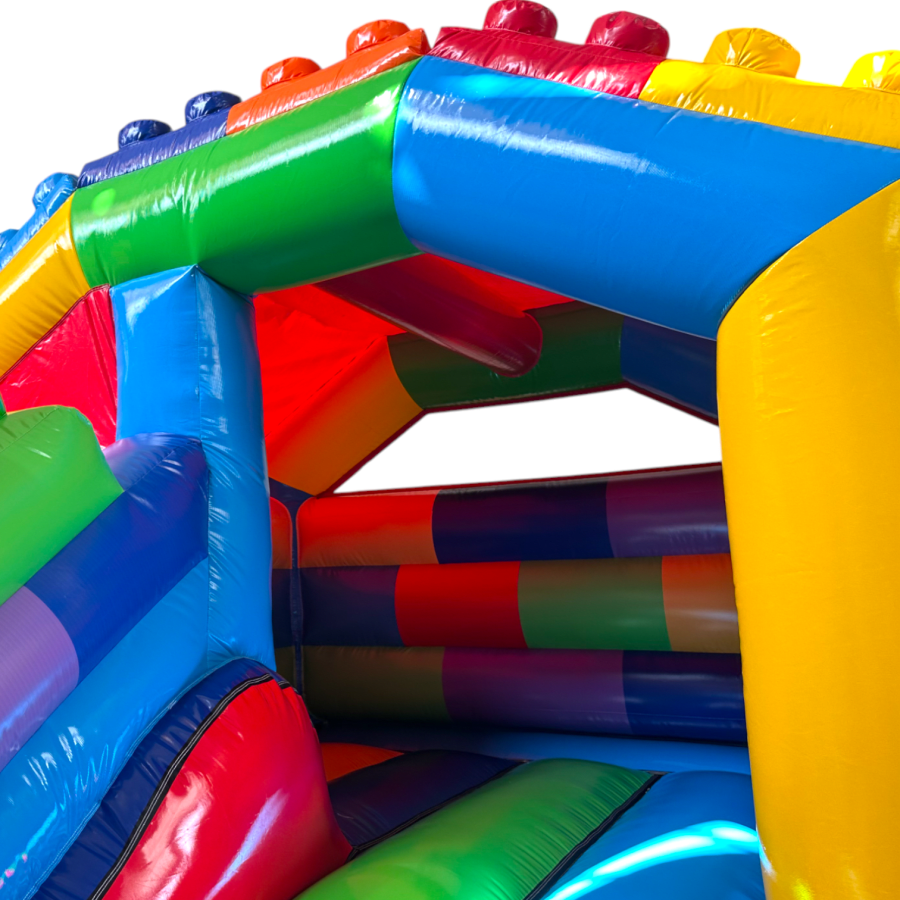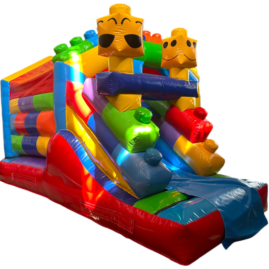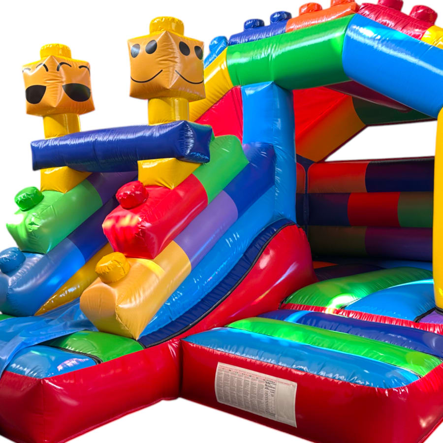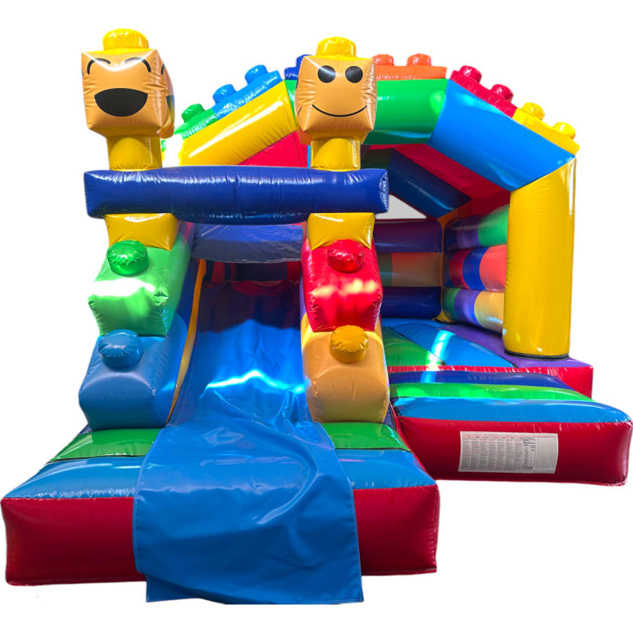 New Epic 3D Low Height Bouncy Castle with Slide - Block Themed Front Slide Combo