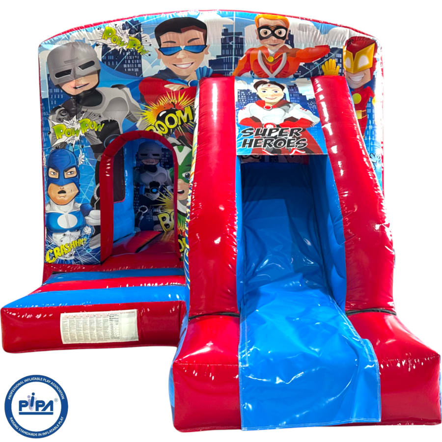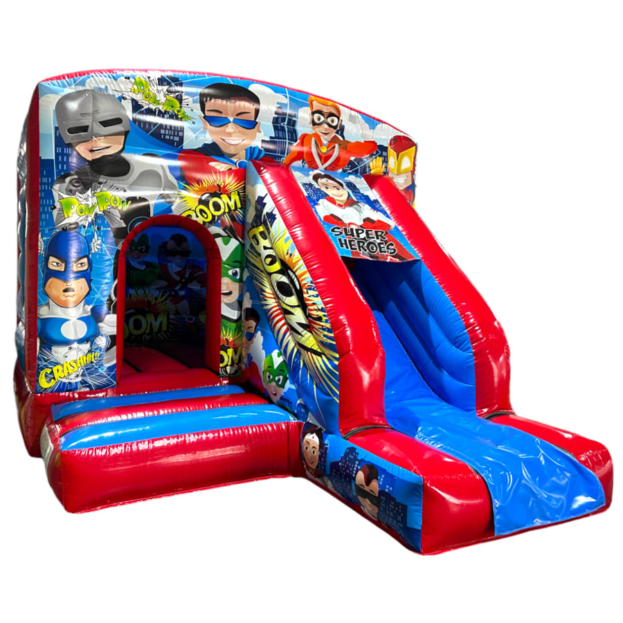 The 12ft x 17ft Bouncy castle with slide is a fantastic new addition that can be added to your fleet. The bouncy castle with slide combines 2 of the most popular items in one extraordinary inflatable where space is at a premium. The bouncy castle with slide combo is the perfect combination slide for any party, venue or occasion and is ideal for all age groups. This brightly coloured piece of equipment provides the perfect bouncing area to bounce along with friends, whilst the slide provides entertainment for the rest of the guests at the same time and certainly won't break the bank.