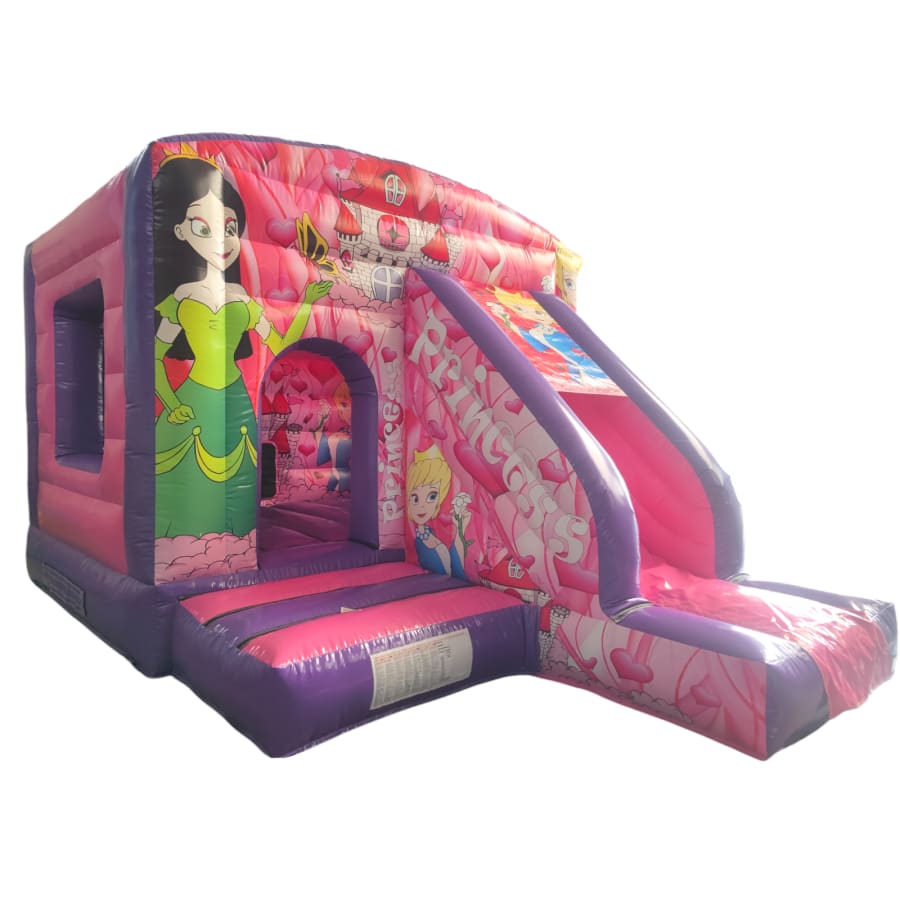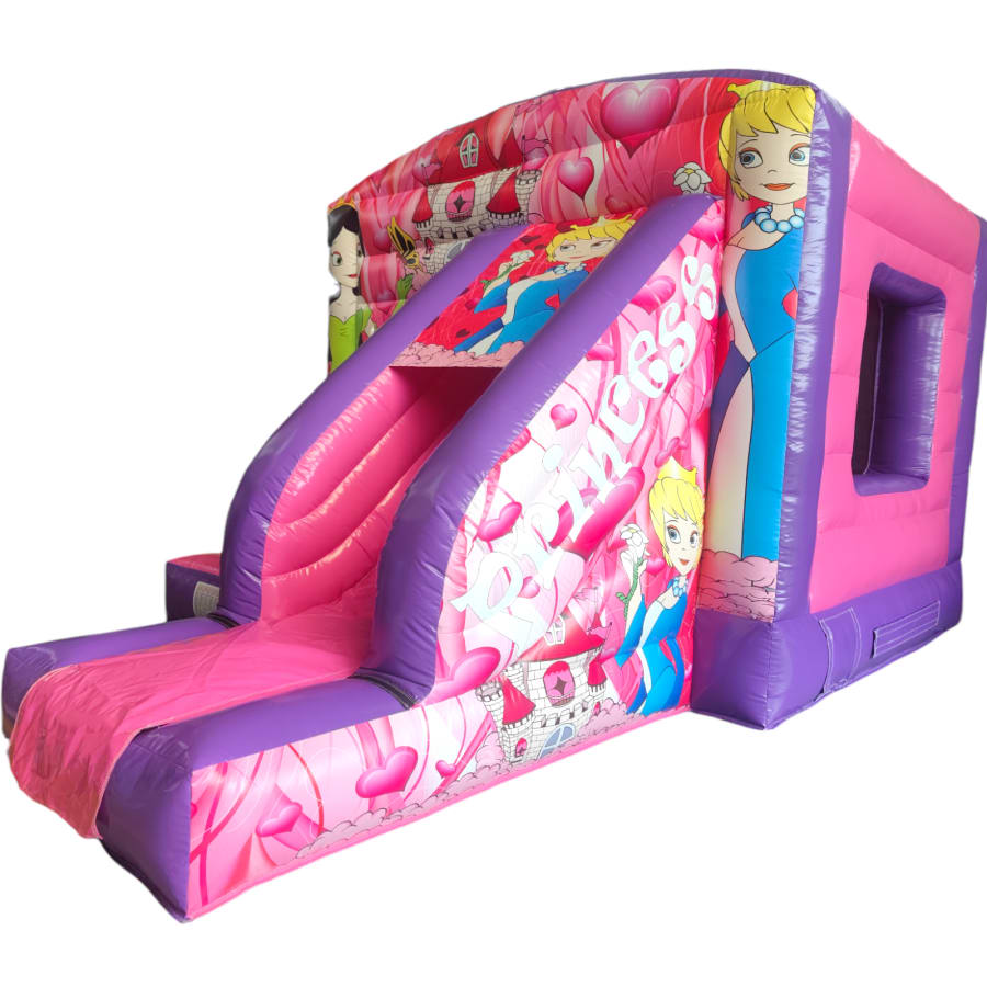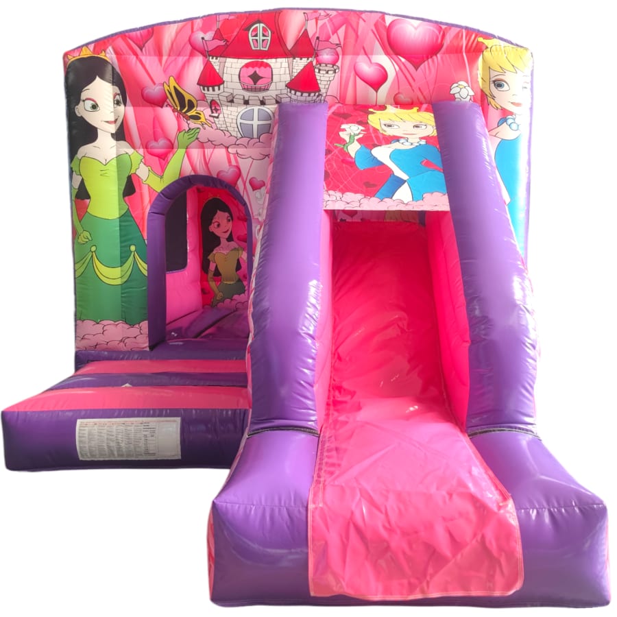 The 12ft x 17ft Bouncy castle with slide is a fantastic new addition that can be added to your fleet. The bouncy castle with slide combines 2 of the most popular items in one extraordinary inflatable where space is at a premium. The bouncy castle with slide combo is the perfect combination slide for any party, venue or occasion and is ideal for all age groups. This brightly coloured piece of equipment provides the perfect bouncing area to bounce along with friends, whilst the slide provides entertainment for the rest of the guests at the same time and certainly won't break the bank.