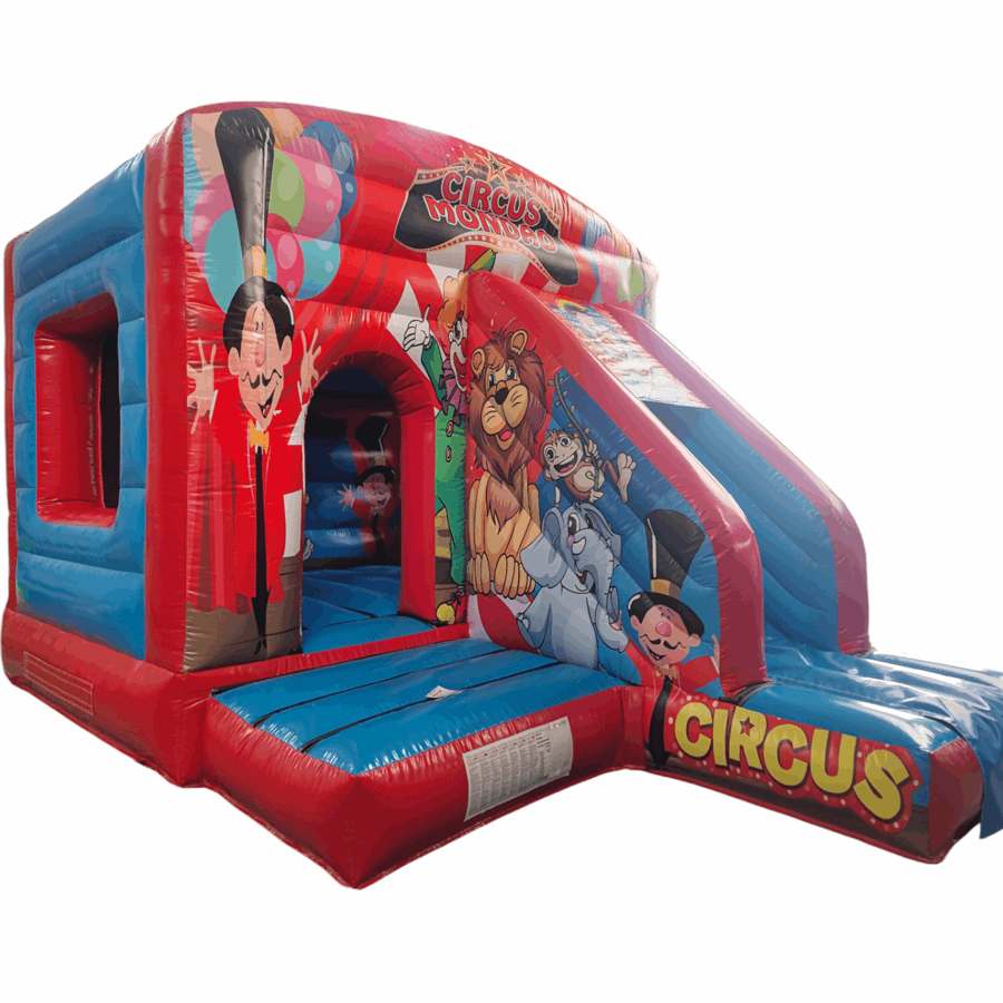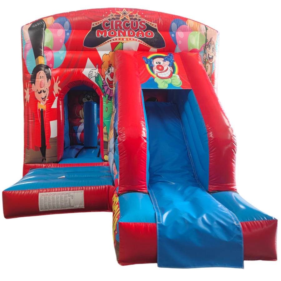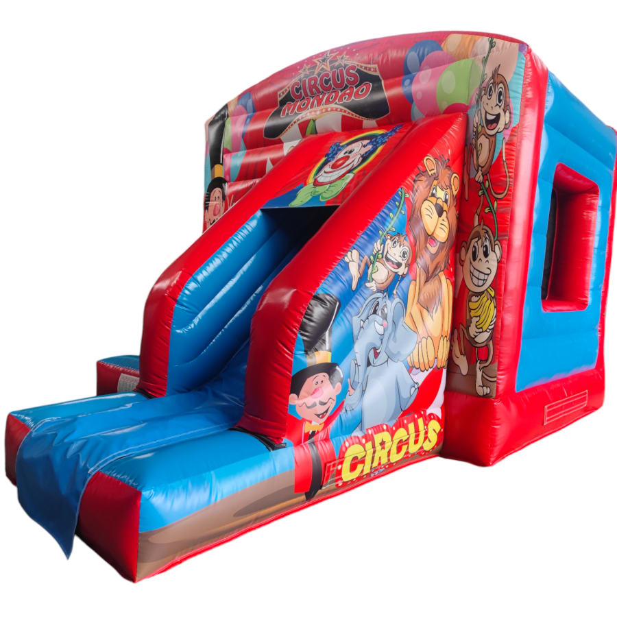 The 12ft x 17ft Bouncy castle with slide is a fantastic new addition that can be added to your fleet. The bouncy castle with slide combines 2 of the most popular items in one extraordinary inflatable where space is at a premium. The bouncy castle with slide combo is the perfect combination slide for any party, venue or occasion and is ideal for all age groups. This brightly coloured piece of equipment provides the perfect bouncing area to bounce along with friends, whilst the slide provides entertainment for the rest of the guests at the same time and certainly won't break the bank.