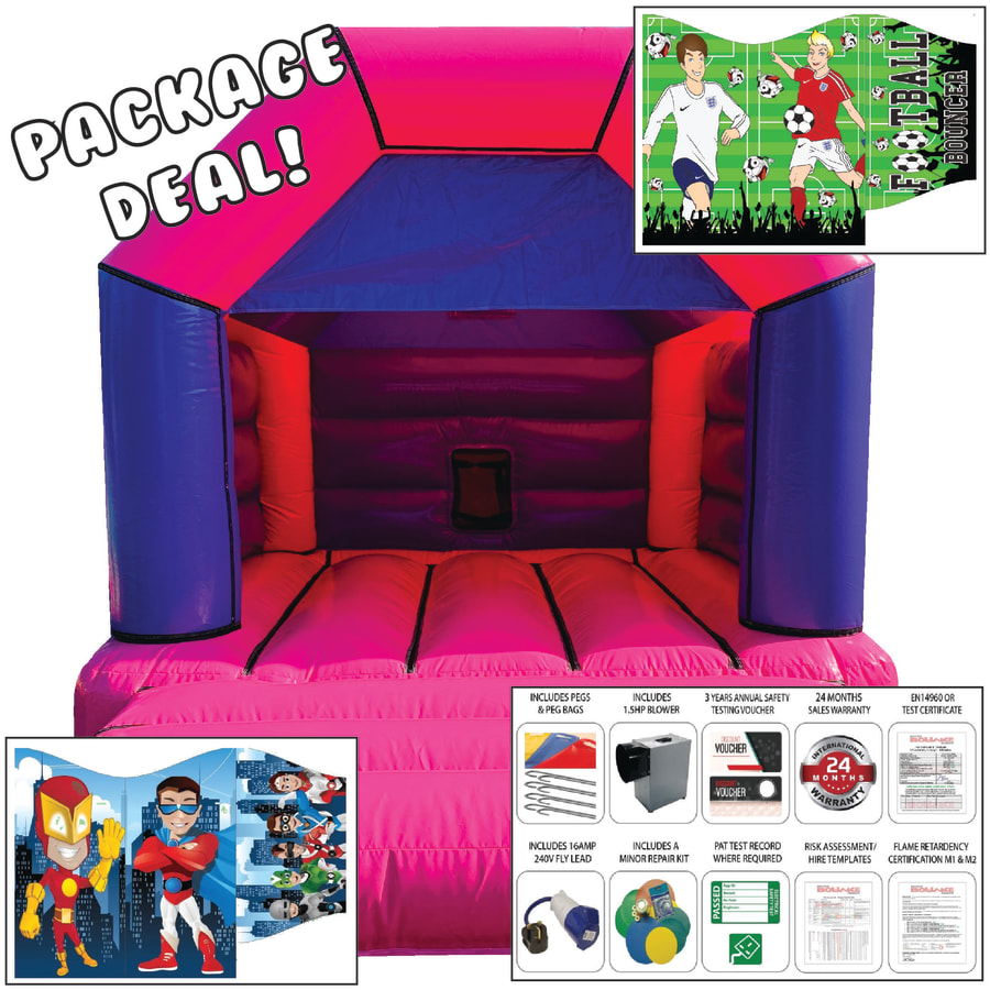 This castle can be made in a range of colours with a range of art work and we also have stock that is readily available should anybody need something urgently. This castle will last a long time if looked after and maintained correctly. This type of castle will fit in most gardens and the majority of indoor venues and due to its manageable size and weight, its can be set up and packed away by a single person without the need of any help.o