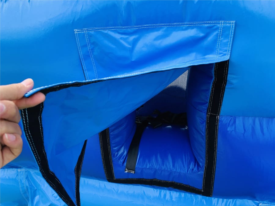 The disco ready inflatable comes complete with speaker holding system and light holder pocked with easy access for cable management if required (Not supplied) The speaker pocket is located in a position that is well protected and hidden away from small fingers yet still bellows the sound out into the inflatable.
