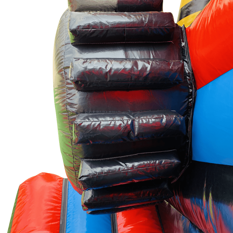 The bouncy castle with slide combines 2 of the most popular items we manufacture in one extraordinary inflatable where space is at a premium. The bouncy castle with slide combo is the perfect combination slide for any party, venue or occasion and is ideal for all age groups. This brightly coloured piece of equipment provides the perfect bouncing area to bounce along with friends, whilst the slide provides entertainment for the rest of the guests at the same time and certainly won't break the bank for the creativity it brings. This will be a battery powered design as standard but can be pre-wired upon request.