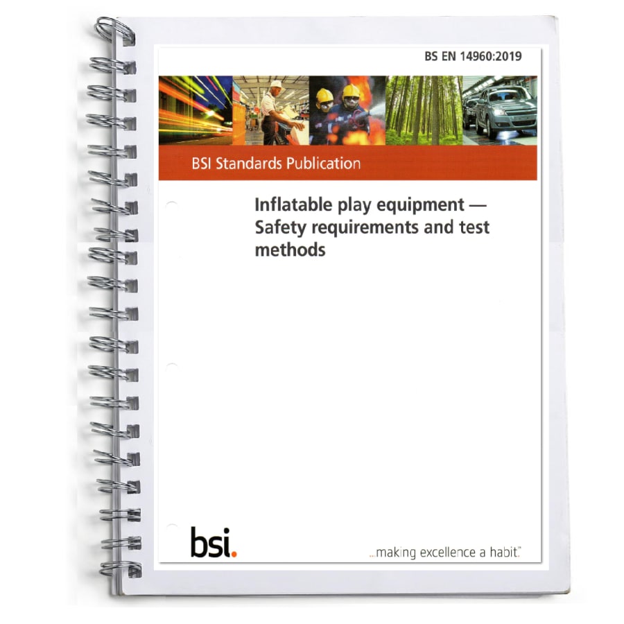 BS EN 14960 - 2019 outlines the safety requirements and test methods for inflatable play equipment. By utilizing this document, you can ensure that your inflatable hire operations are conducted safely and competently. BS EN 14960 - 2019 provides comprehensive guidelines for manufacturers, installers, and hire businesses like yours, focusing on the safety aspects of inflatable play equipment. It specifies the necessary measures to address risks and minimize accidents, allowing you to create a secure environment for your customers and satisfy the needs of HSE in the UK and Europe.