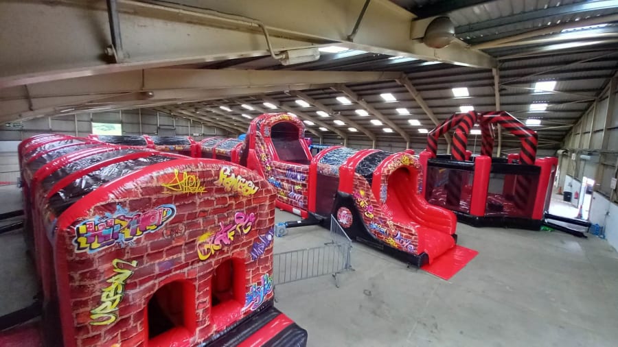 Not quite fancy this one? Get in touch today and see if we can make something that extra bit special! All extension pieces are designed to be located in the middle of the obstacle course and can literally be designed in any shape and style you require in the future. We have everything from Balance beams, Climbing walls, Cliff jumps, Wrecking balls, Tunnels, Bashers, Crawl Tubes, Foam pits and much much more. This section incorporates an up and over slide, biff and bash, and bouncing area, hurdles, whackers, biff and bash posts, mini humps, obstacle humps, crawl through tunnels and much much more!