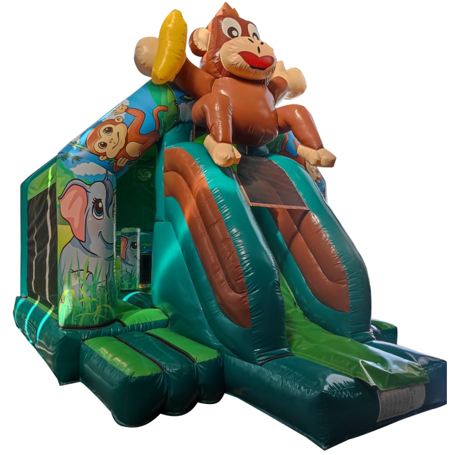 The bouncy castle with slide combines 2 of the most popular items we manufacture in one extraordinary inflatable where space is at a premium. The bouncy castle with slide combo is the perfect combination slide for any party, venue or occasion and is ideal for all age groups. This brightly coloured piece of equipment provides the perfect bouncing area to bounce along with friends, whilst the slide provides entertainment for the rest of the guests at the same time and certainly won't break the bank for the creativity it brings. This will be a battery powered design as standard but can be pre-wired upon request.