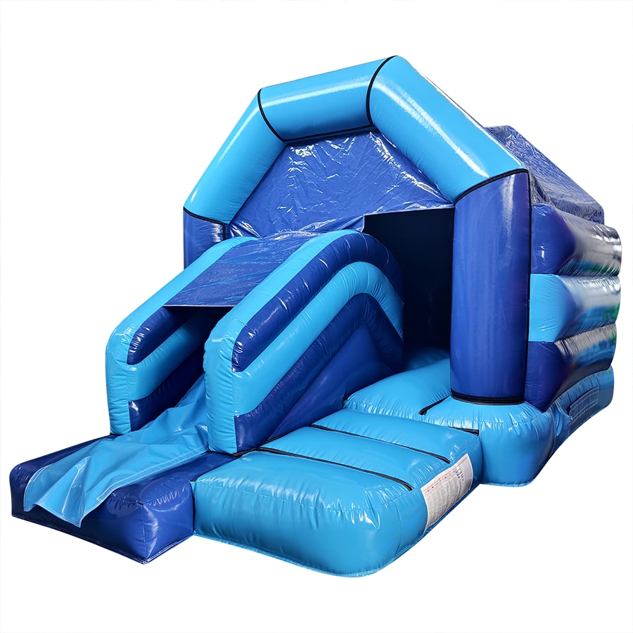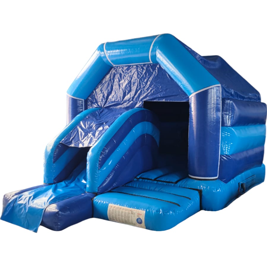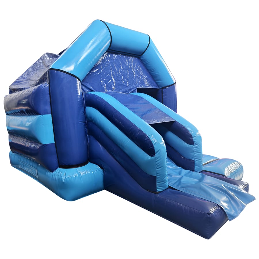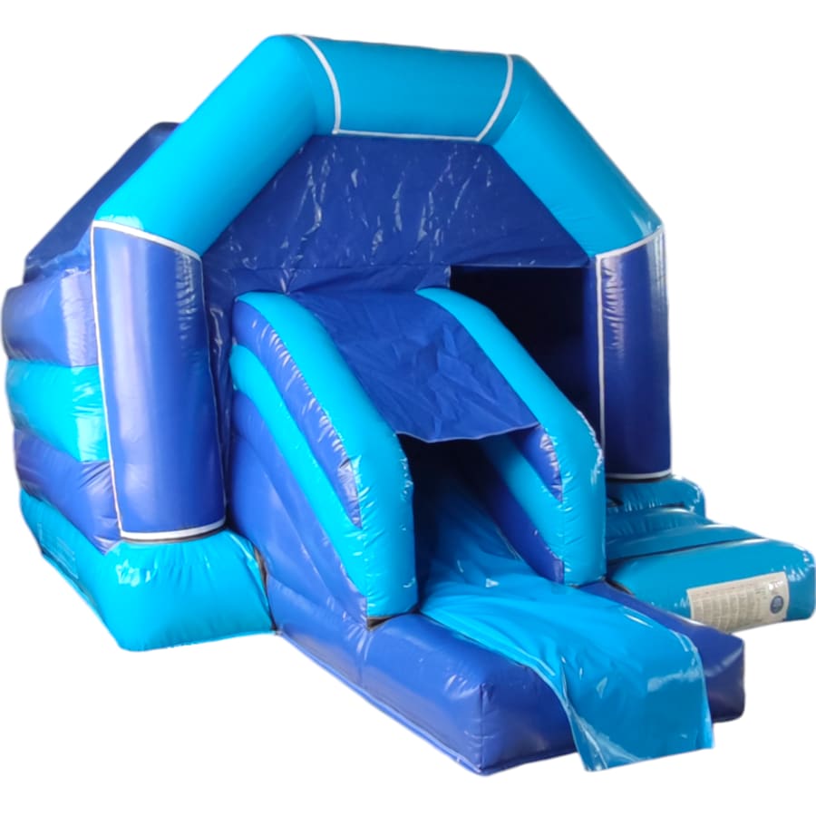 The 11ft x 16ft Bouncy castle with slide is a fantastic new addition that can be added to your fleet. The bouncy castle with slide combines 2 of the most popular items in one extraordinary inflatable where space is at a premium. The bouncy castle with slide combo is the perfect combination slide for any party, venue or occasion and is ideal for all age groups. This brightly coloured piece of equipment provides the perfect bouncing area to bounce along with friends, whilst the slide provides entertainment for the rest of the guests at the same time and certainly won't break the bank.