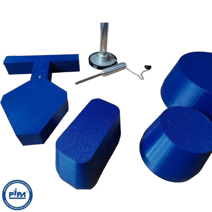 In summary, the precise manufacturing of these probes, both the larger head probes and the finger probe, is essential for ensuring the safety, durability, and effectiveness of testing inflatable play equipment. This precision helps inflatable hire businesses comply with safety standards and maintain customer trust by ensuring their equipment is safe and reliable.