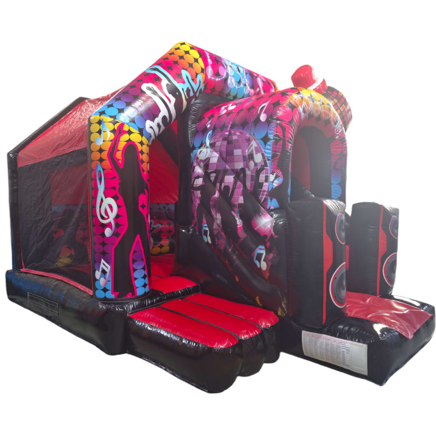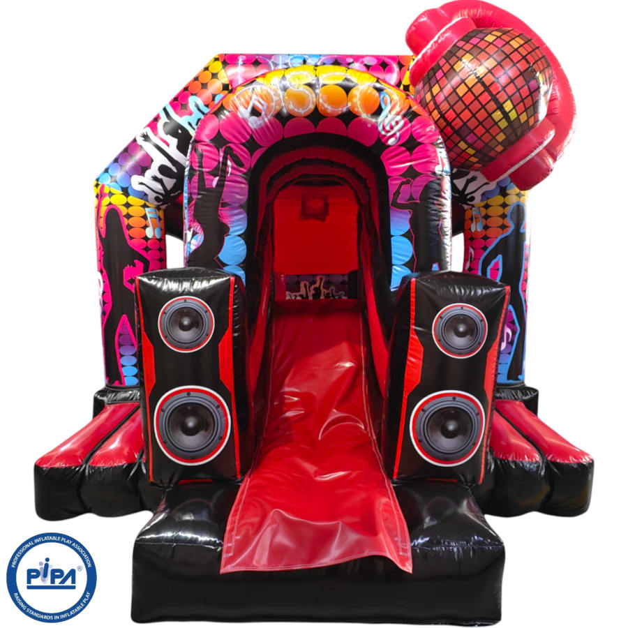 The bouncy castle with slide combines 2 of the most popular items we manufacture in one extraordinary inflatable where space is at a premium. The bouncy castle with slide combo is the perfect combination slide for any party, venue or occasion and is ideal for all age groups. This brightly coloured piece of equipment provides the perfect bouncing area to bounce along with friends, whilst the slide provides entertainment for the rest of the guests at the same time and certainly won't break the bank for the creativity it brings. This will be a battery powered design as standard but can be pre-wired upon request.