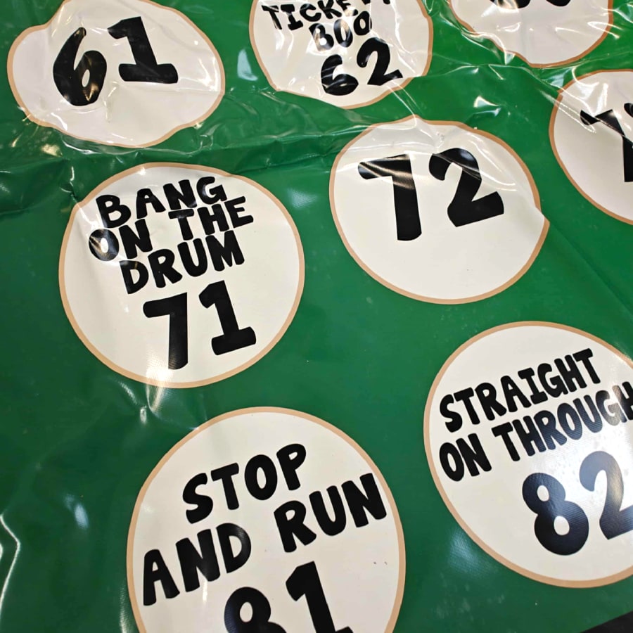The Set Up – Picture a vibrant, padded mat laid out on the floor, featuring bold, numbered circles in a range of bright colours. Made from soft, cushioned material, it’s comfortable, safe, and ideal for group play. The numbers are large and easy to see, creating a clear and inviting play area for all ages.