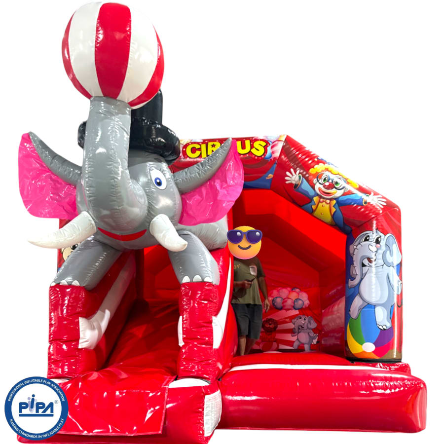 3D bouncy castle, bouncy castle combo, Circus inflatable, inflatable with slide, 3D inflatable bouncy castle, kids party inflatable, moonwalk inflatable, funfair themed bouncy castle, bouncy castle hire UK, inflatable slide combo, indoor bouncy castle hire, front slide inflatable, disco-ready bouncy castle