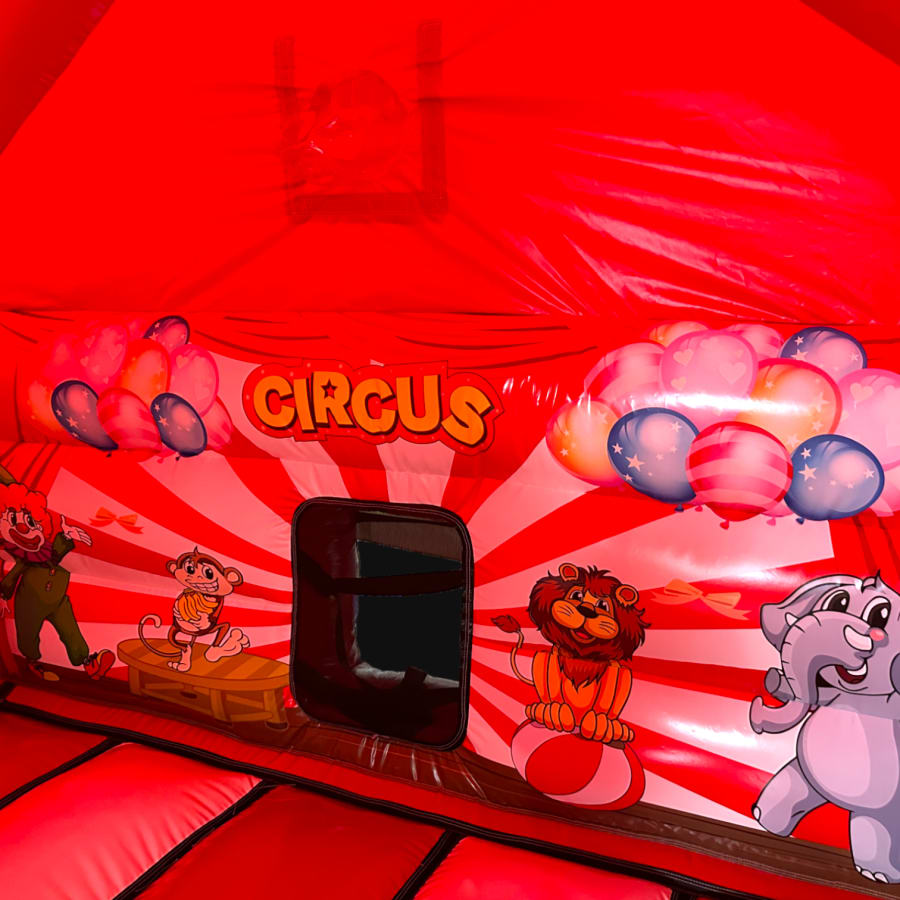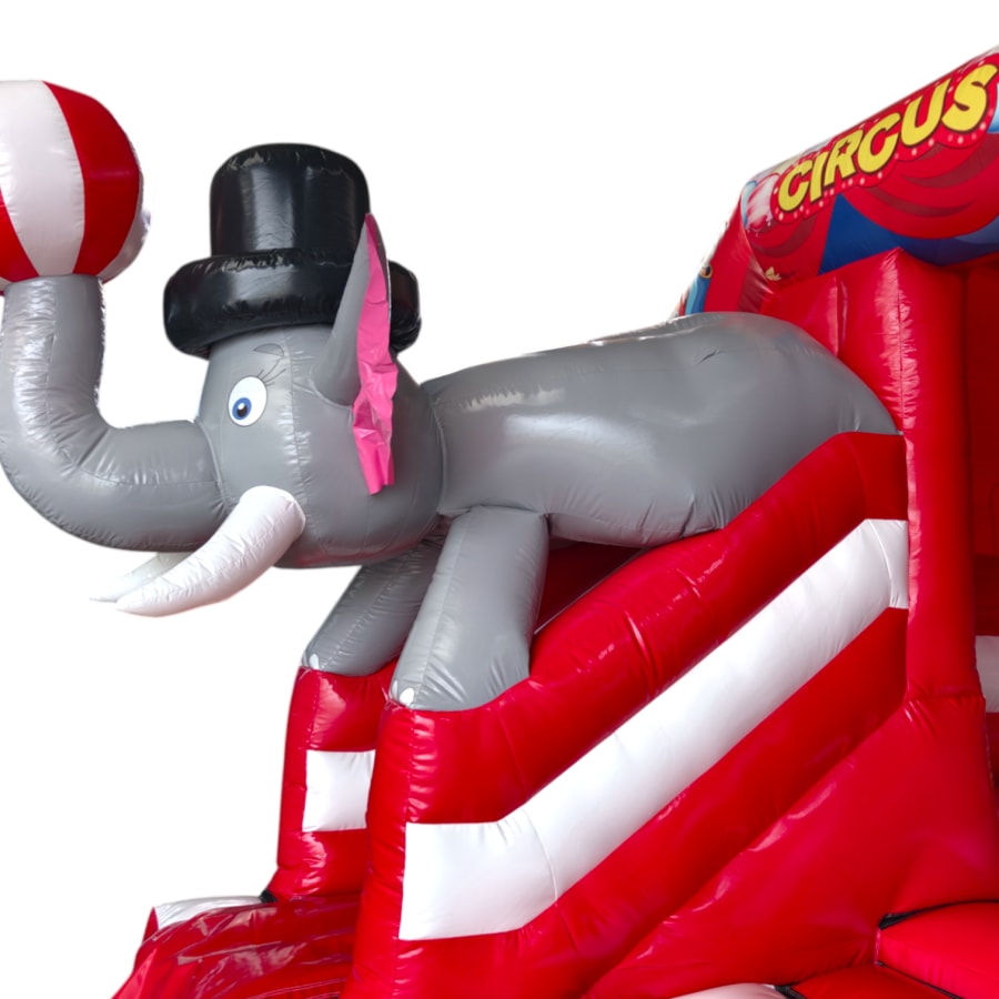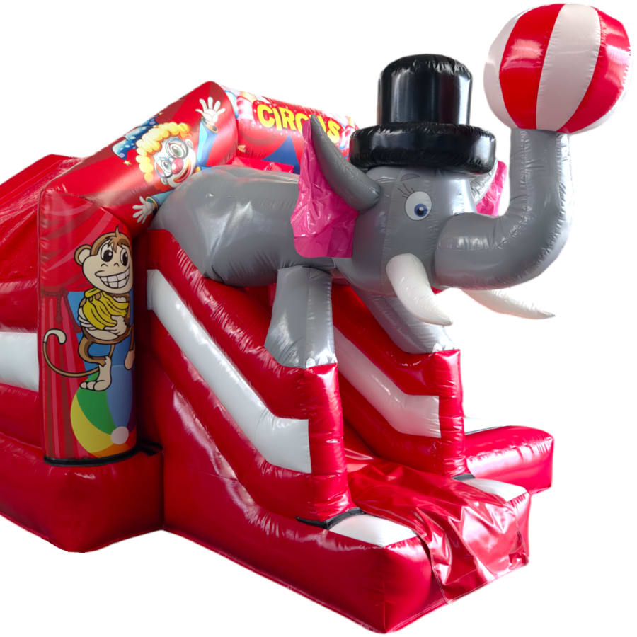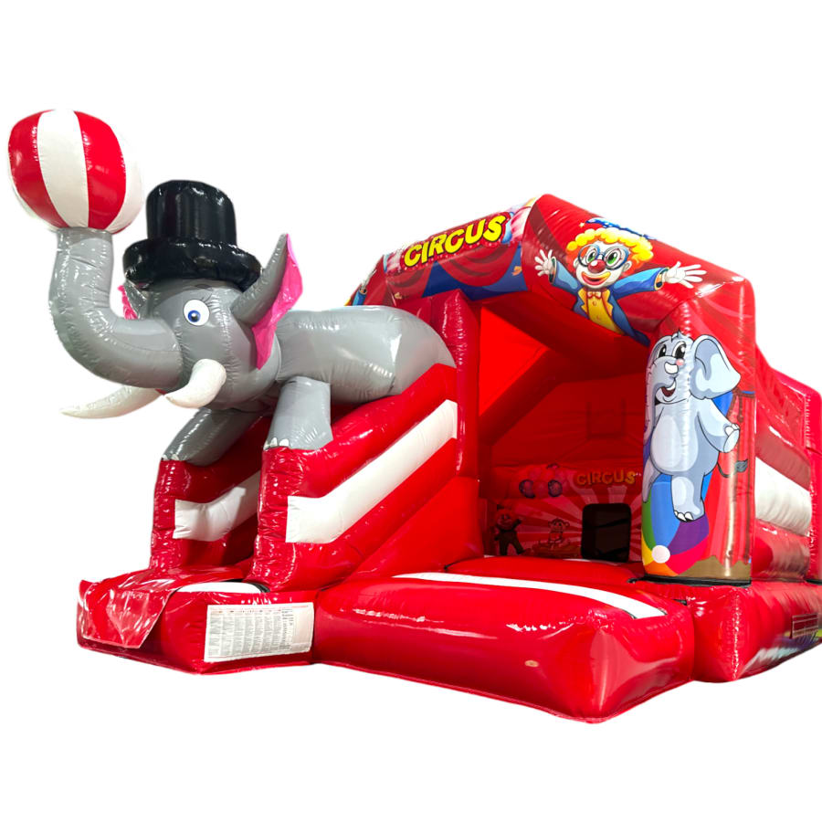 New Epic 3D Low Height Bouncy Castle with Slide - Circus Themed Front Slide Combo