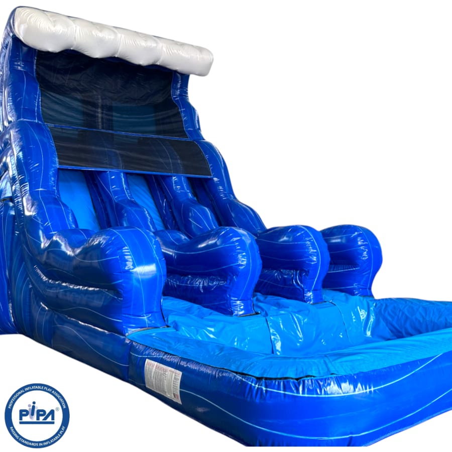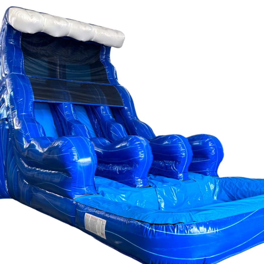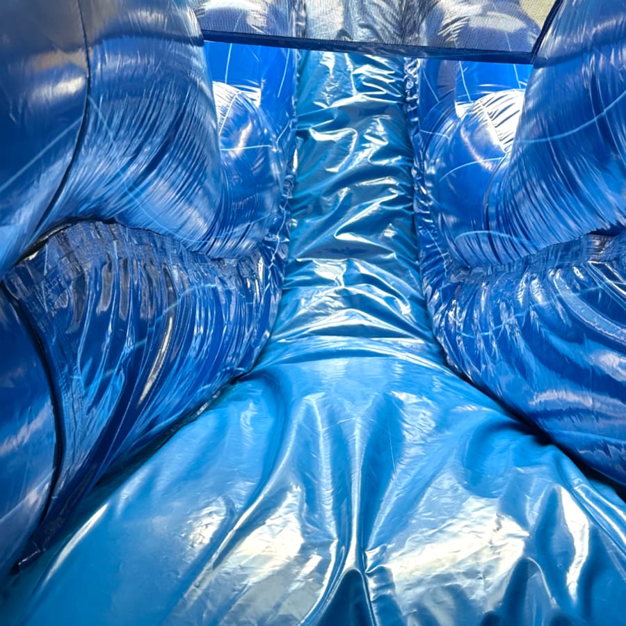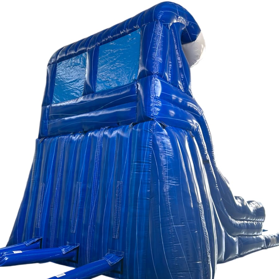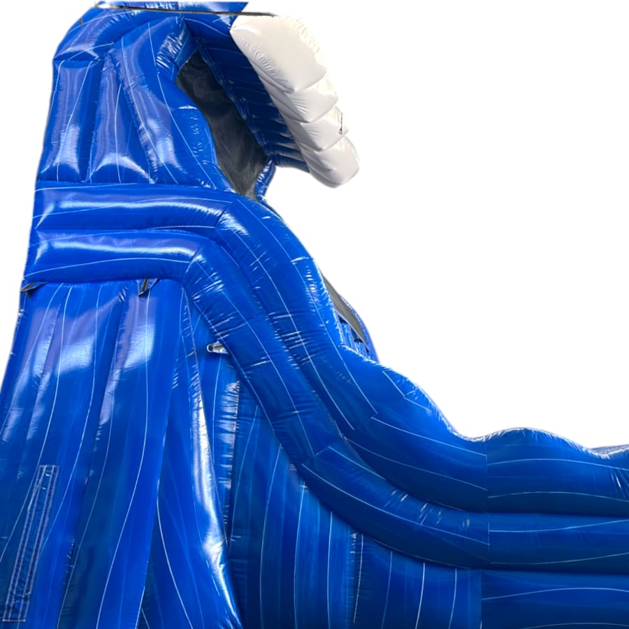 The Waverunner Water Slide has been designed to combine visual impact with structural integrity, making it a centerpiece attraction for any operator’s inventory. Standing at 18 feet in overall height with a 9-foot launch platform, this unit is engineered to provide an elevated rider experience while maintaining strict safety standards. Its scale alone ensures it will capture attention, but its performance and build quality are what set it apart. The slide’s proportions are carefully designed to create a smooth, fast ride path that maximizes excitement without compromising stability or safety. The result is a product that not only delivers an impressive guest experience but also offers operators a dependable and profitable addition to their lineup. The Waverunner Water Slide is not simply an inflatable attraction; it is a showpiece built to perform, engineered to last, and guaranteed to make a lasting impression wherever it is deployed..
