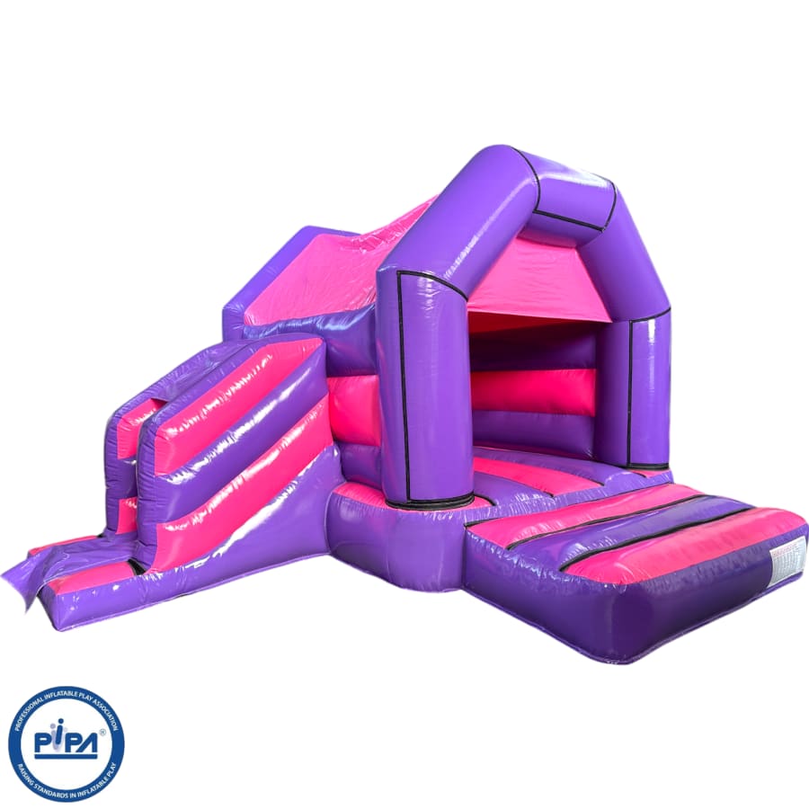 The 15ft x 16ft Bouncy castle with slide is a fantastic new addition that can be added to your fleet. The bouncy castle with slide combines 2 of the most popular items in one extraordinary inflatable where space is at a premium. The bouncy castle with slide combo is the perfect combination slide for any party, venue or occasion and is ideal for all age groups. This brightly coloured piece of equipment provides the perfect bouncing area to bounce along with friends, whilst the slide provides entertainment for the rest of the guests at the same time and certainly won't break the bank.