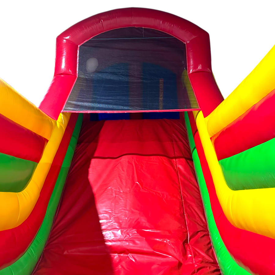 All extension pieces are designed to be located in the middle of the obstacle course and this exact listing is for 1x inflatable extension compromising of 10ft platform slide insert. The blower tubes are located next to one another to give a better set up on site in terms of blower and cable management.
