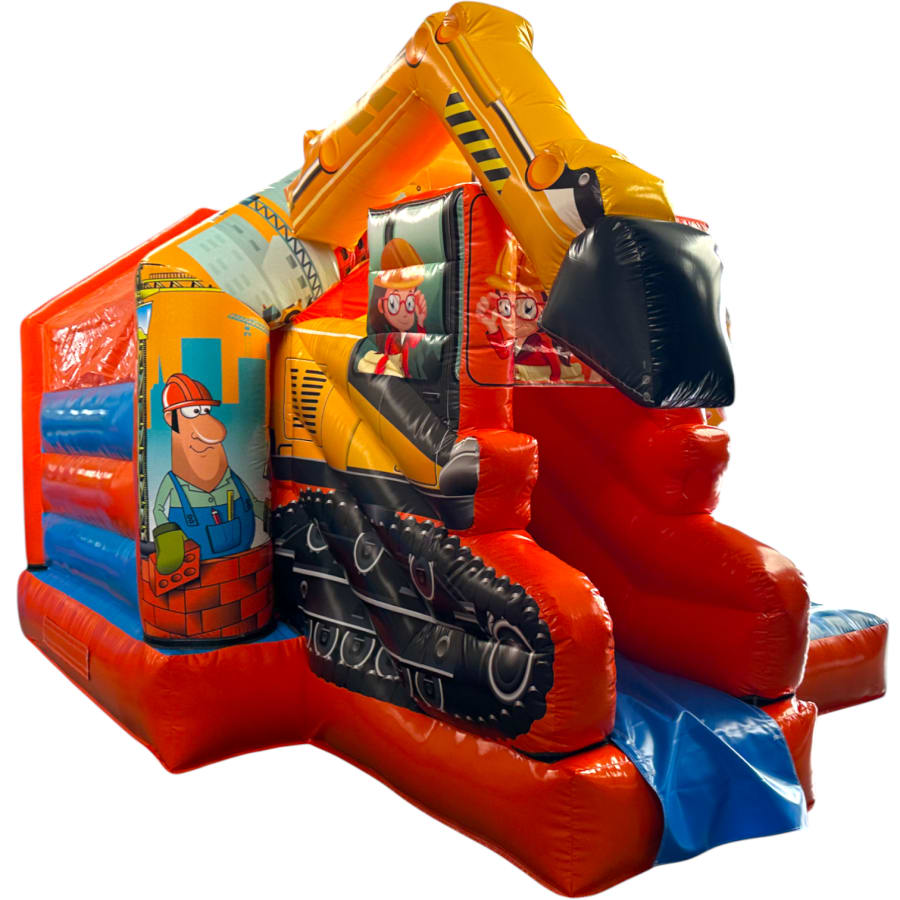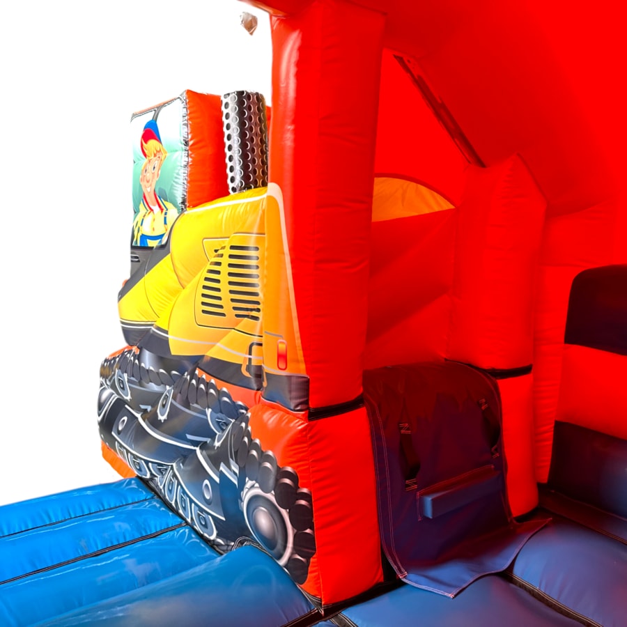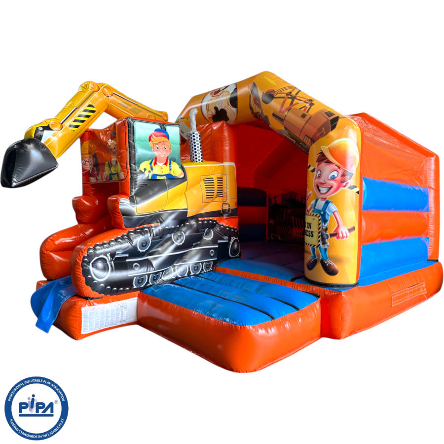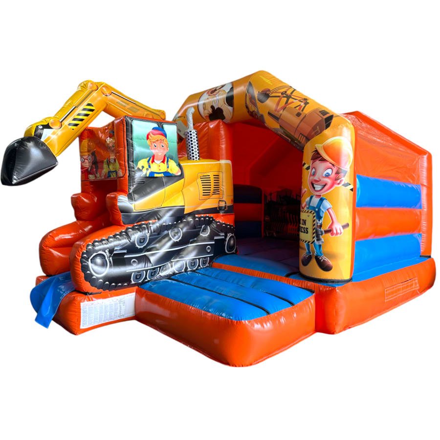 New Epic 3D Low Height Bouncy Castle with Slide - Construction Themed Front Slide Combo