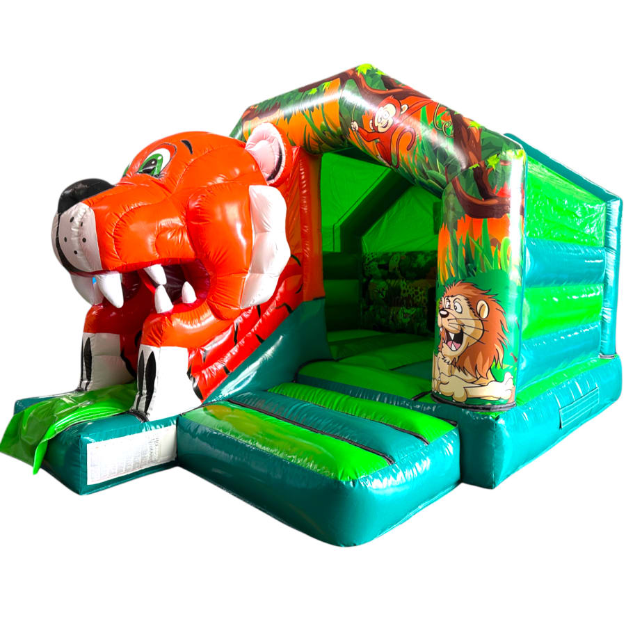 New Epic 3D Low Height Bouncy Castle with Slide - Tiger Themed Front Slide Combo