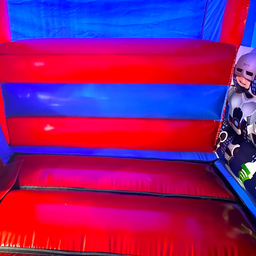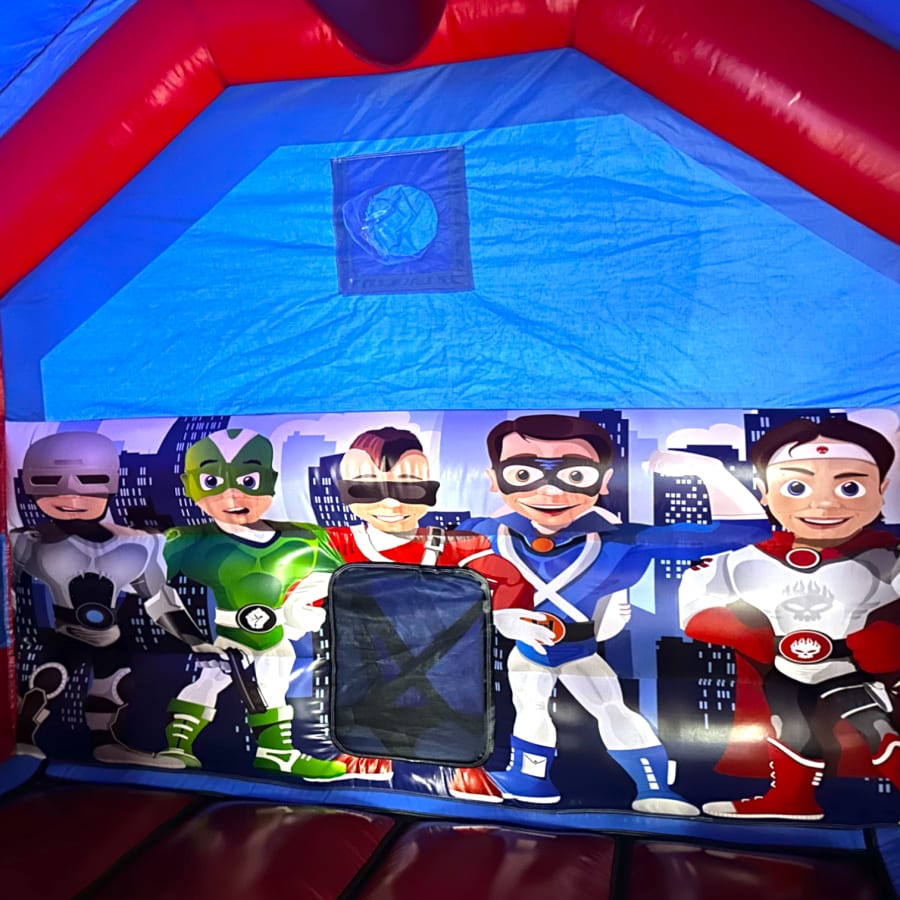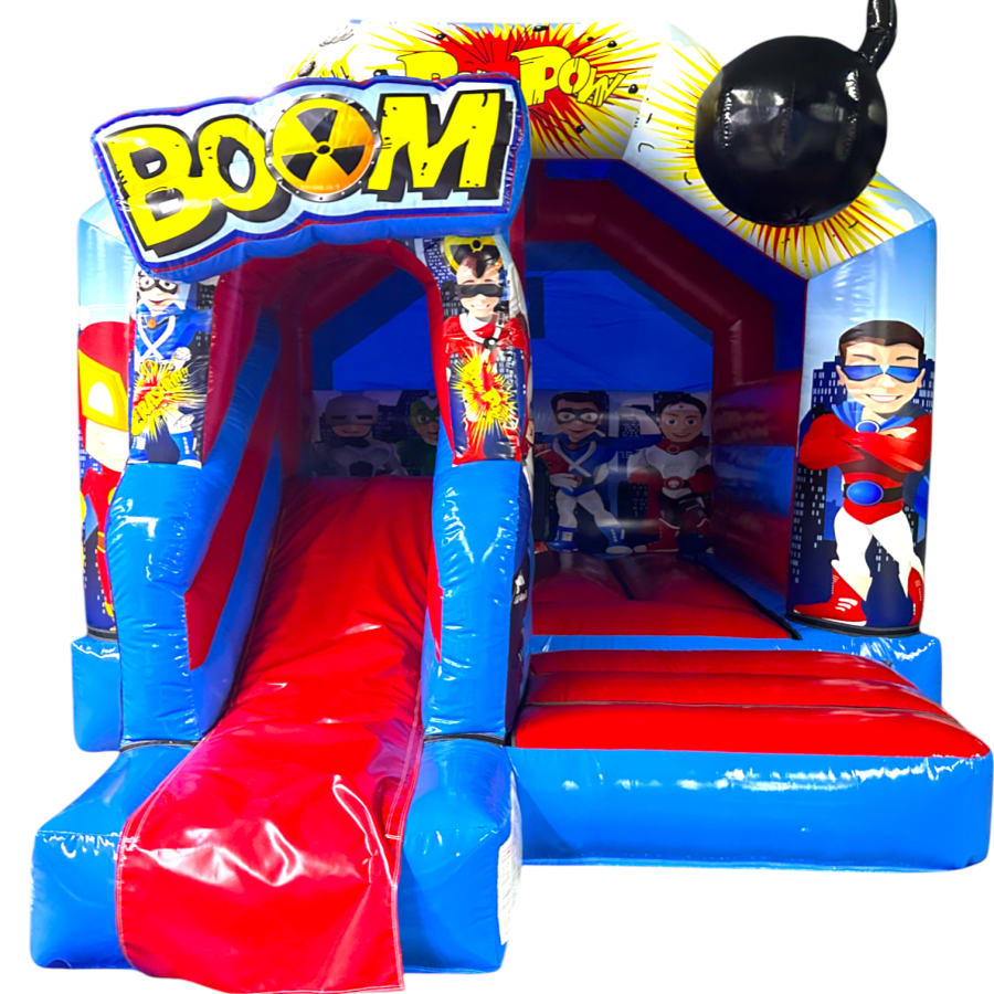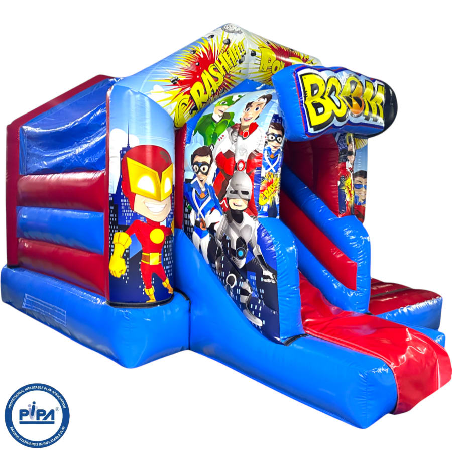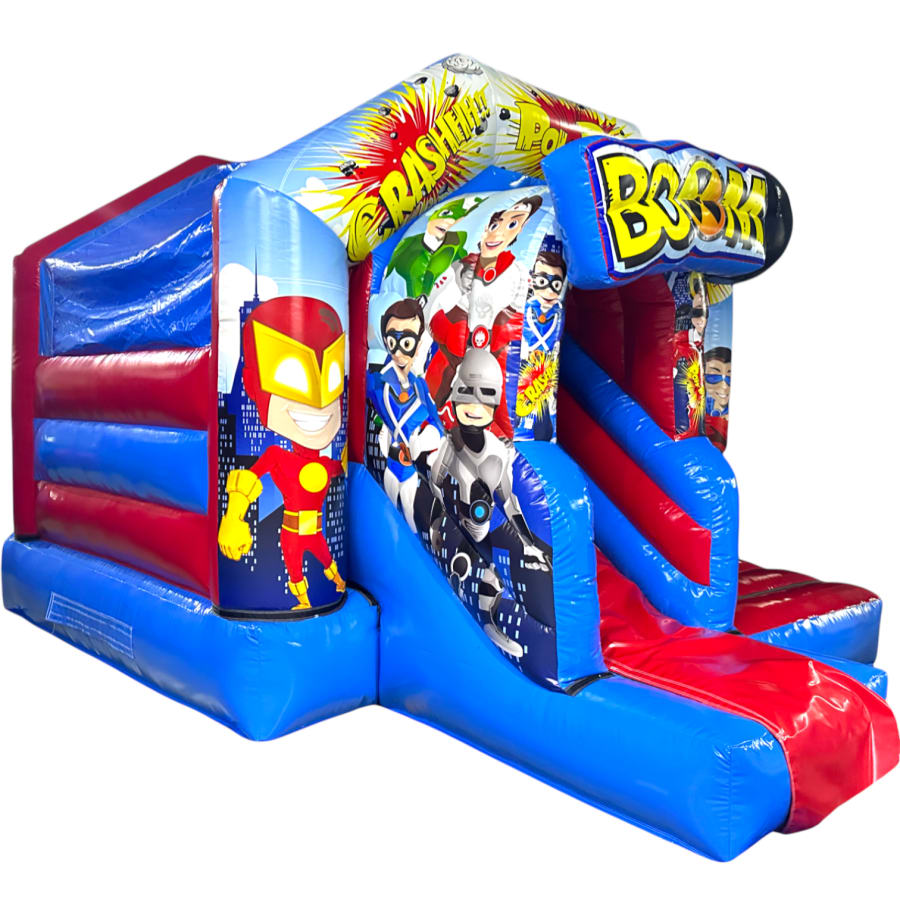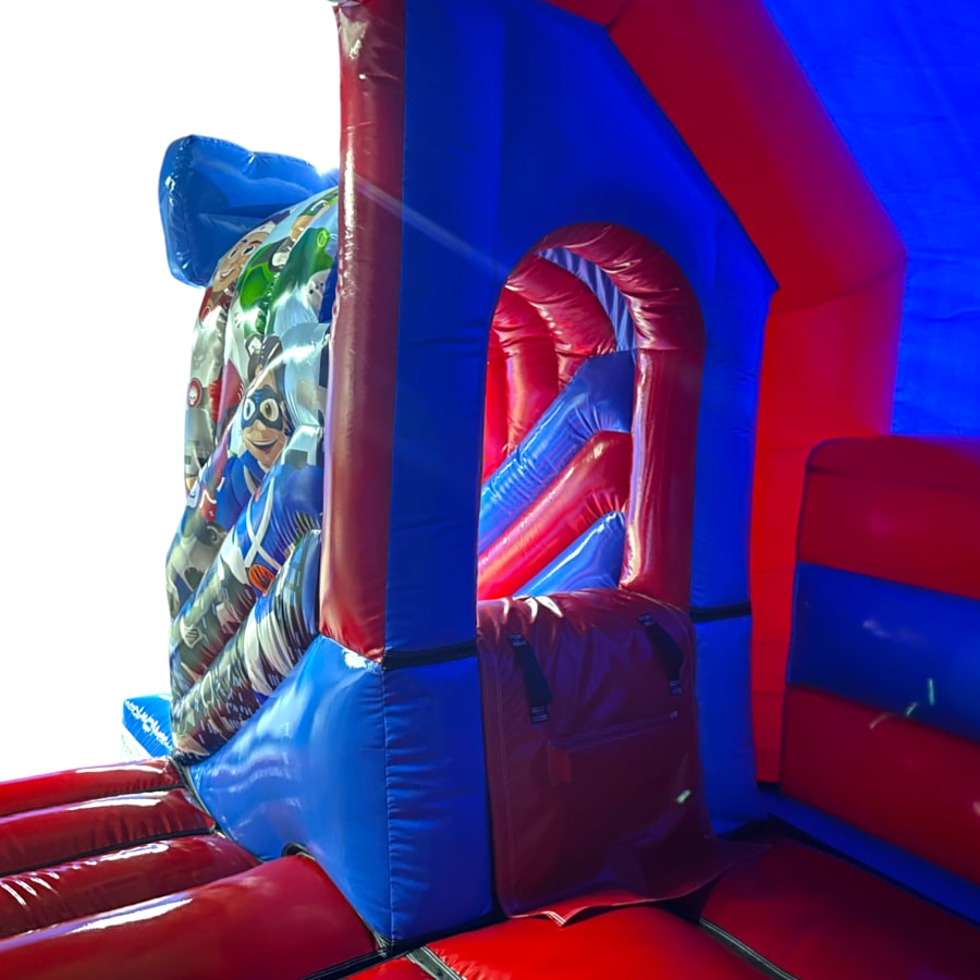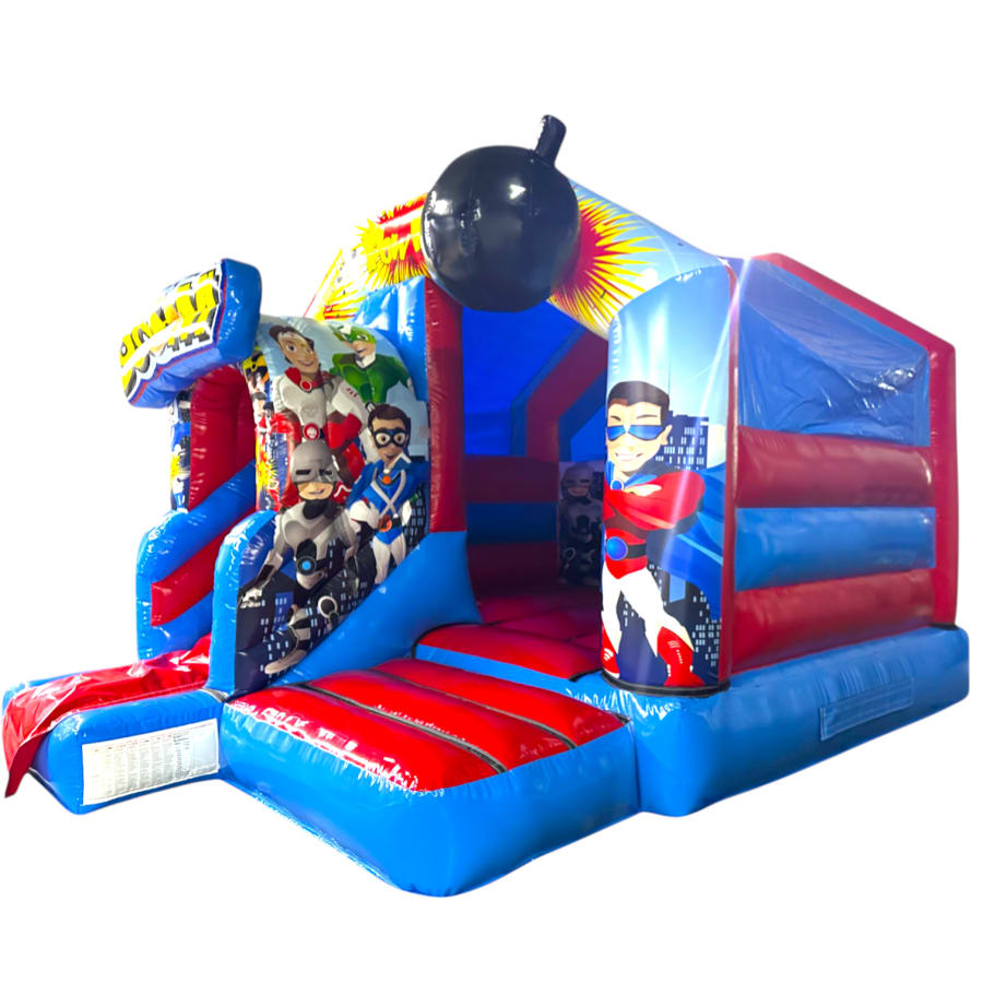 New Epic 3D Low Height Bouncy Castle with Slide - Hero Themed Front Slide Combo