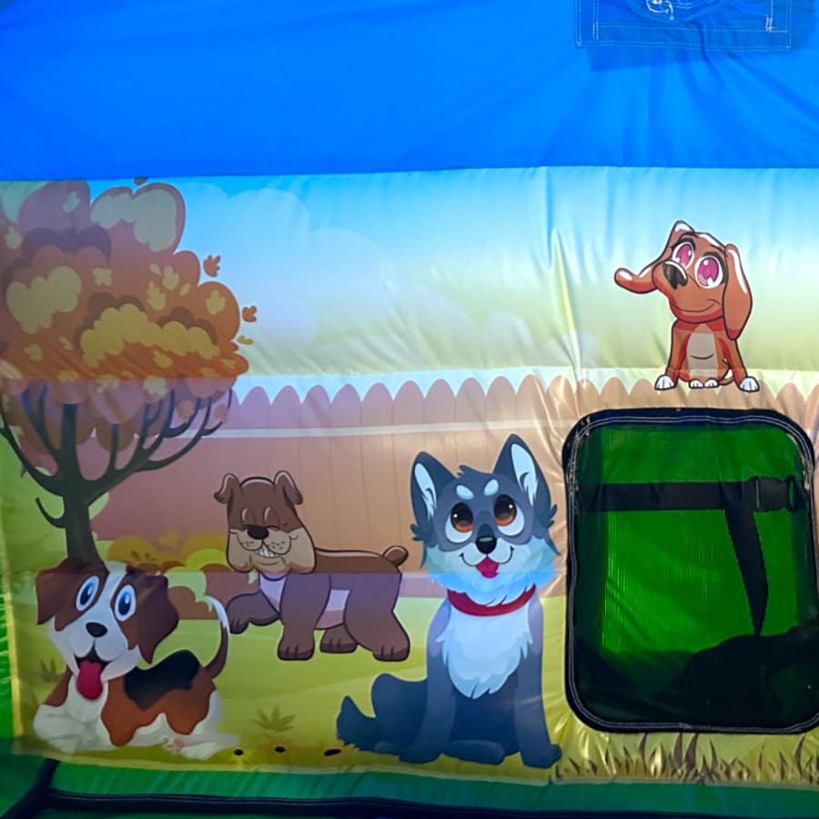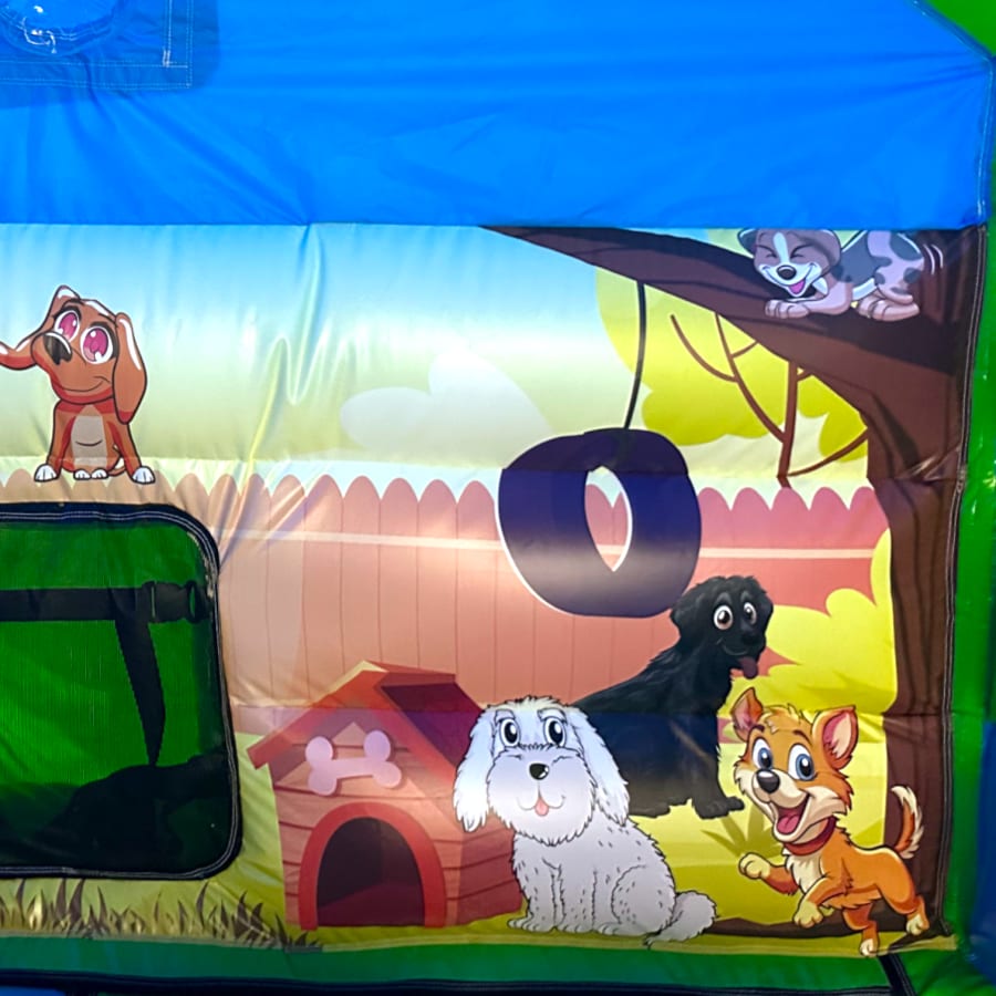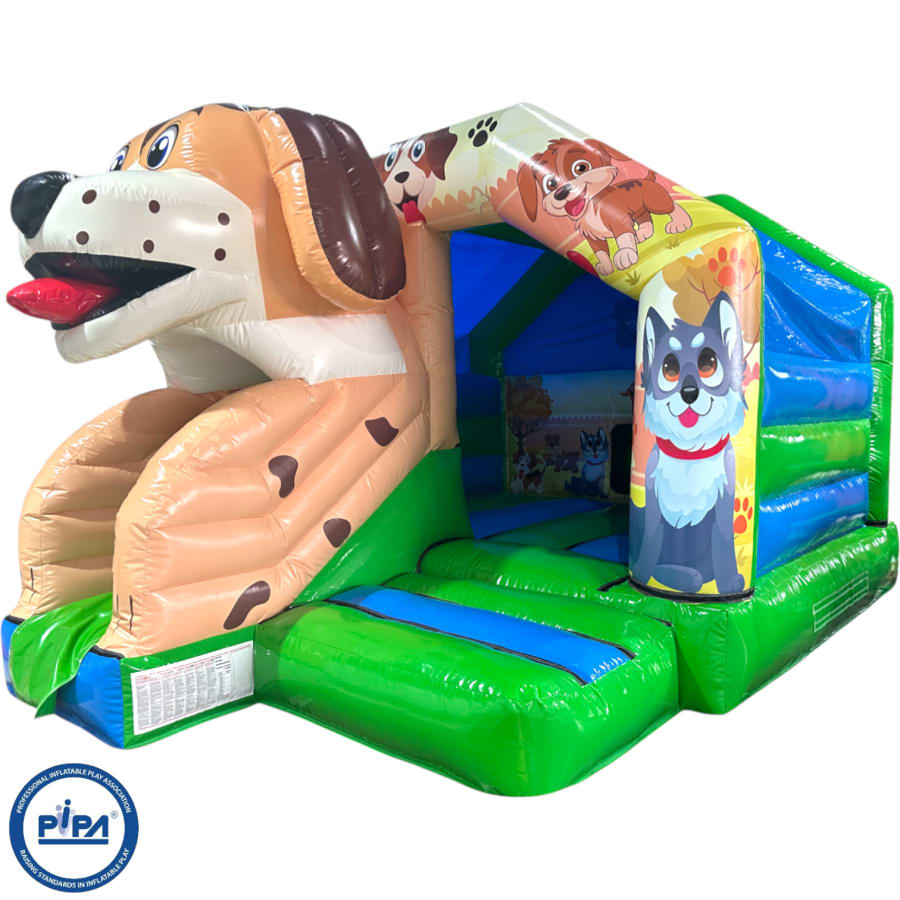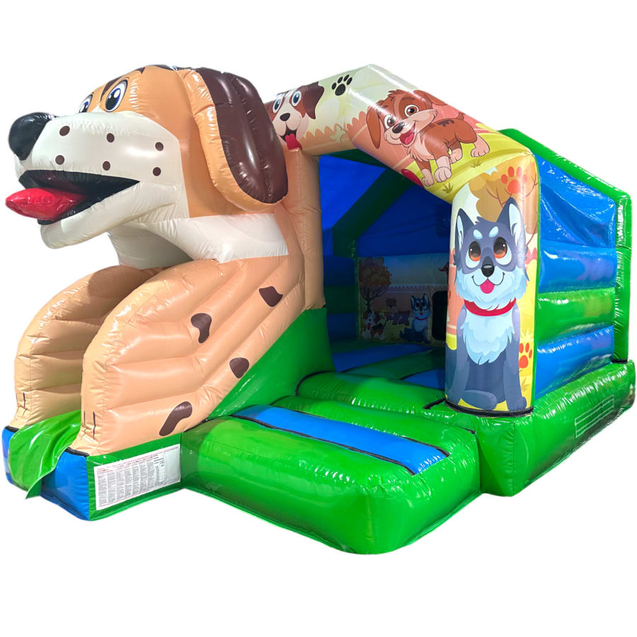 New Epic 3D Low Height Bouncy Castle with Slide - Puppy Themed Front Slide Combo