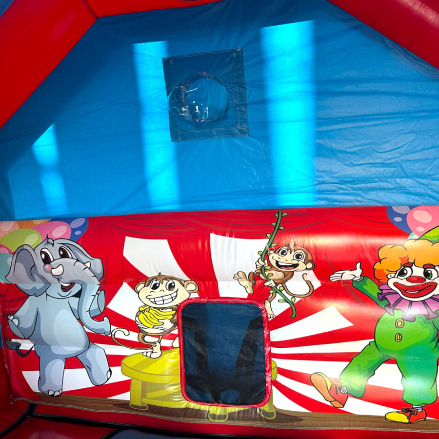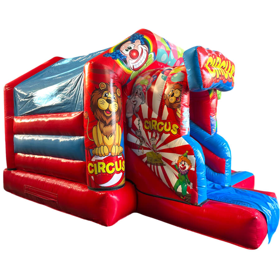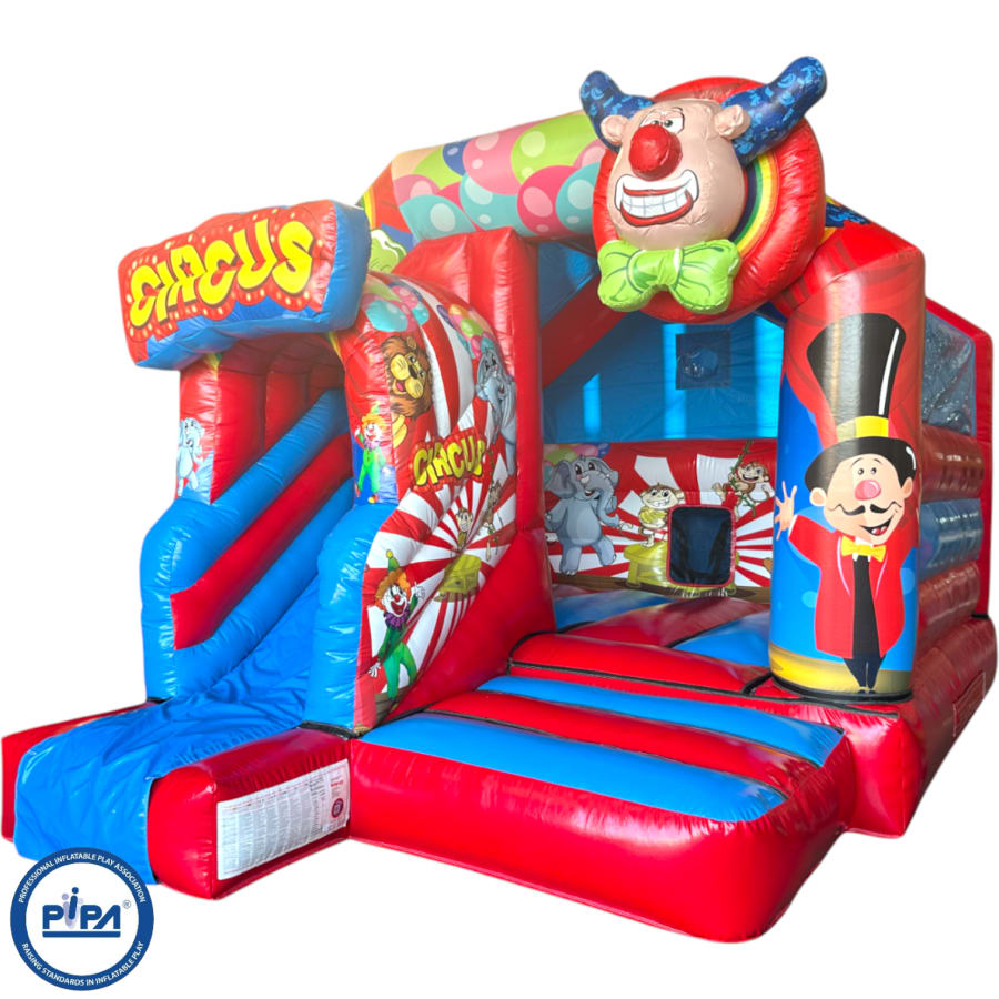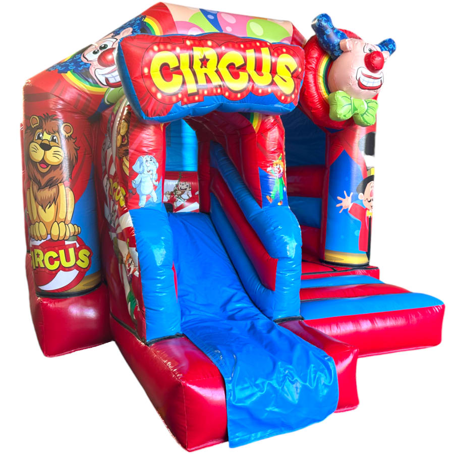 New Epic 3D Low Height Bouncy Castle with Slide - Circus Themed Front Slide Combo