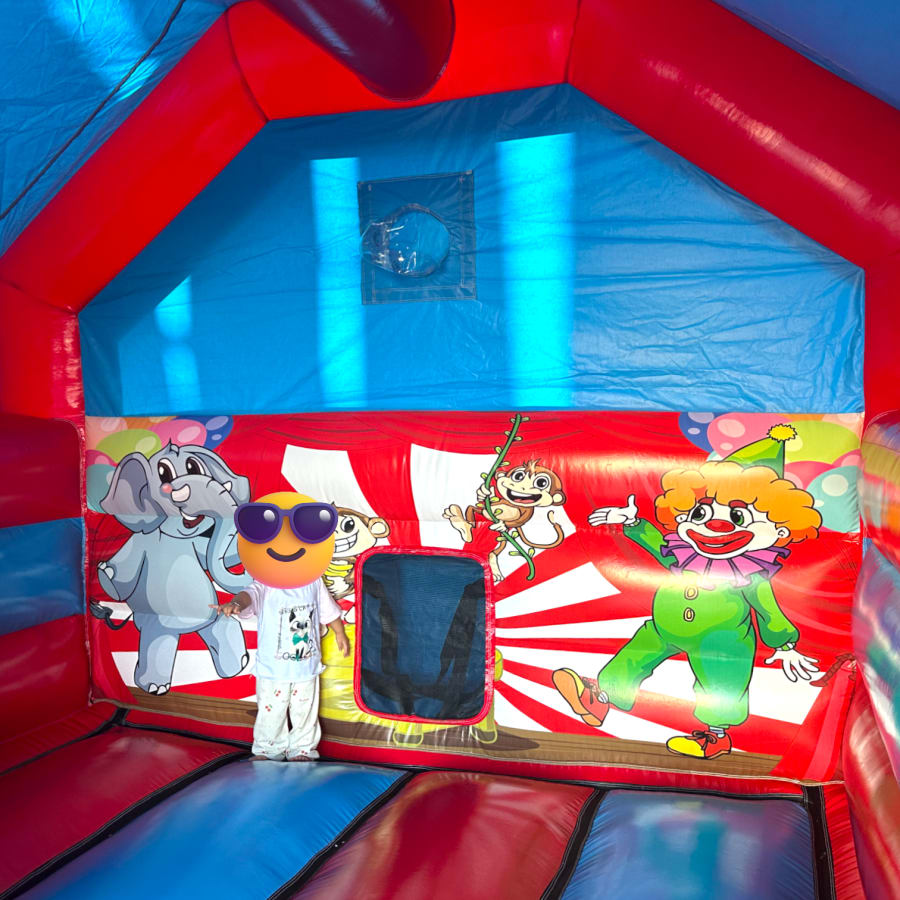 3D bouncy castle, bouncy castle combo, Circus inflatable, inflatable with slide, 3D inflatable bouncy castle, kids party inflatable, moonwalk inflatable, funfair themed bouncy castle, bouncy castle hire UK, inflatable slide combo, indoor bouncy castle hire, front slide inflatable, disco-ready bouncy castle