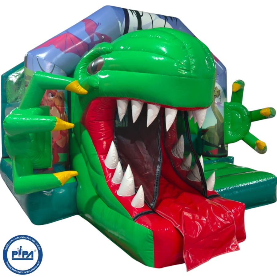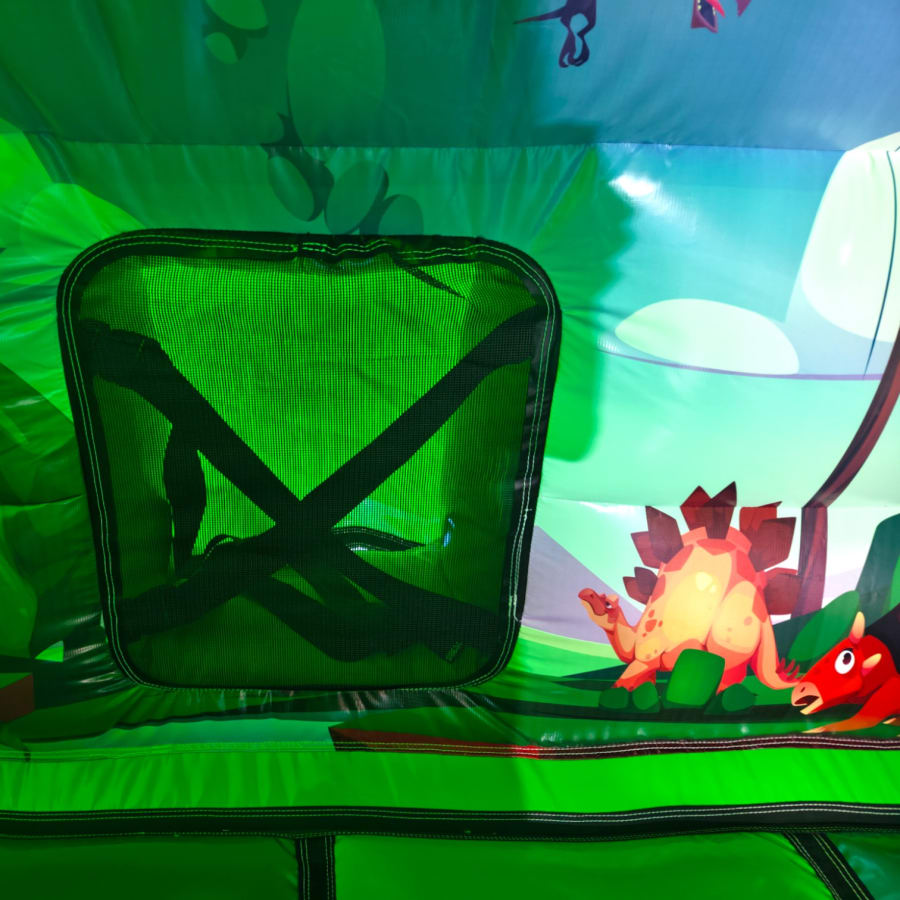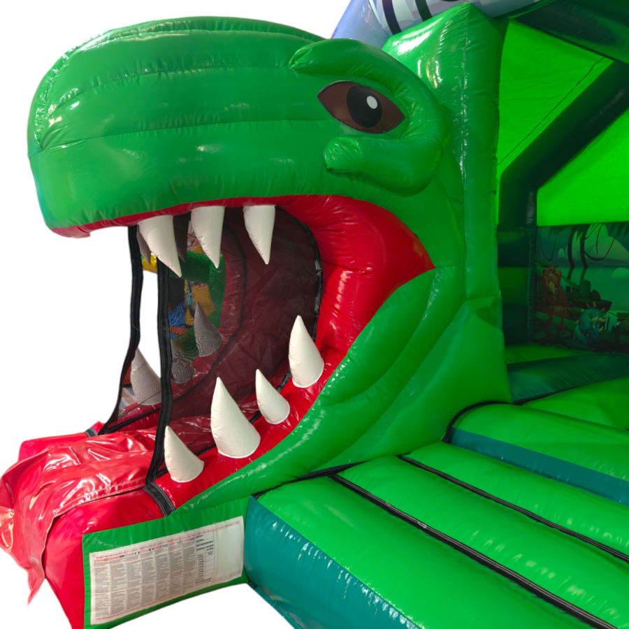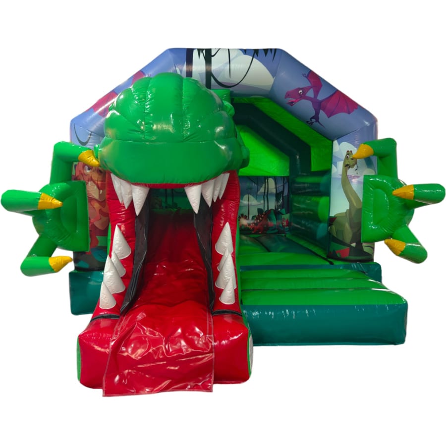 New Epic 3D Low Height Bouncy Castle with Slide - Dinosaur Headphones Themed Front Slide Combo
