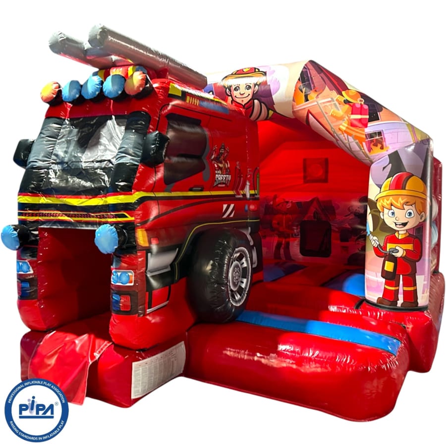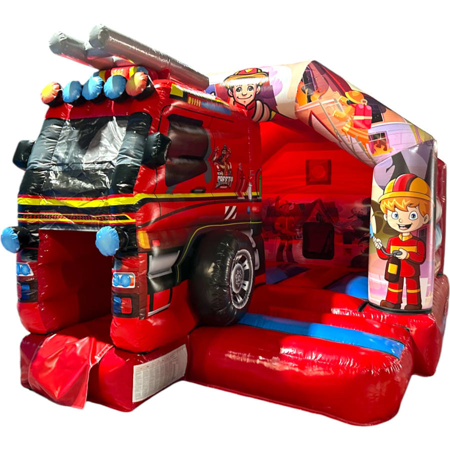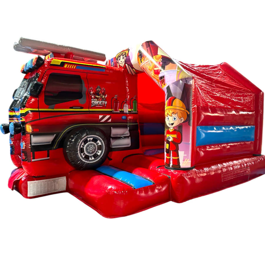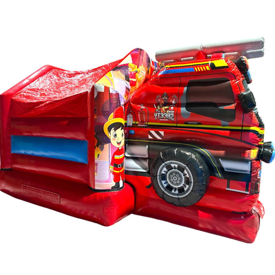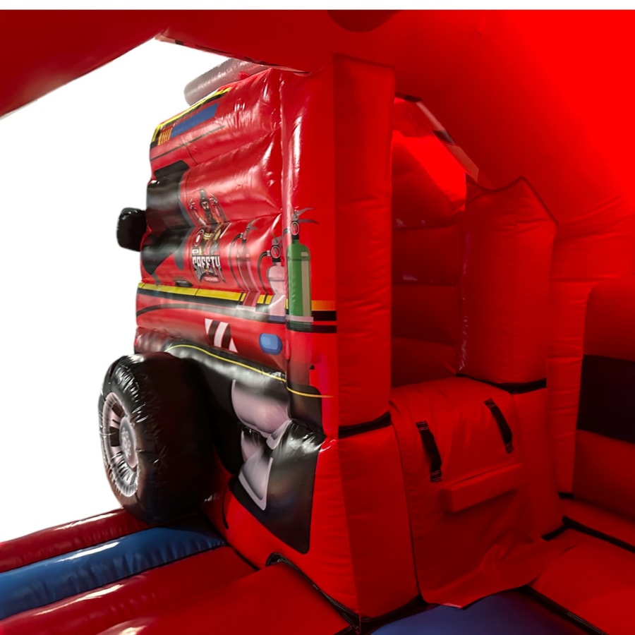 New Epic 3D Low Height Bouncy Castle with Slide - Fire engine Themed Front Slide Combo