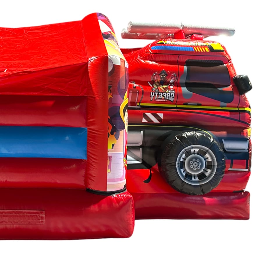 3D bouncy castle, bouncy castle combo, Fire Engine inflatable, inflatable with slide, 3D inflatable bouncy castle, kids party inflatable, moonwalk inflatable, funfair themed bouncy castle, bouncy castle hire UK, inflatable slide combo, indoor bouncy castle hire, front slide inflatable, disco-ready bouncy castle