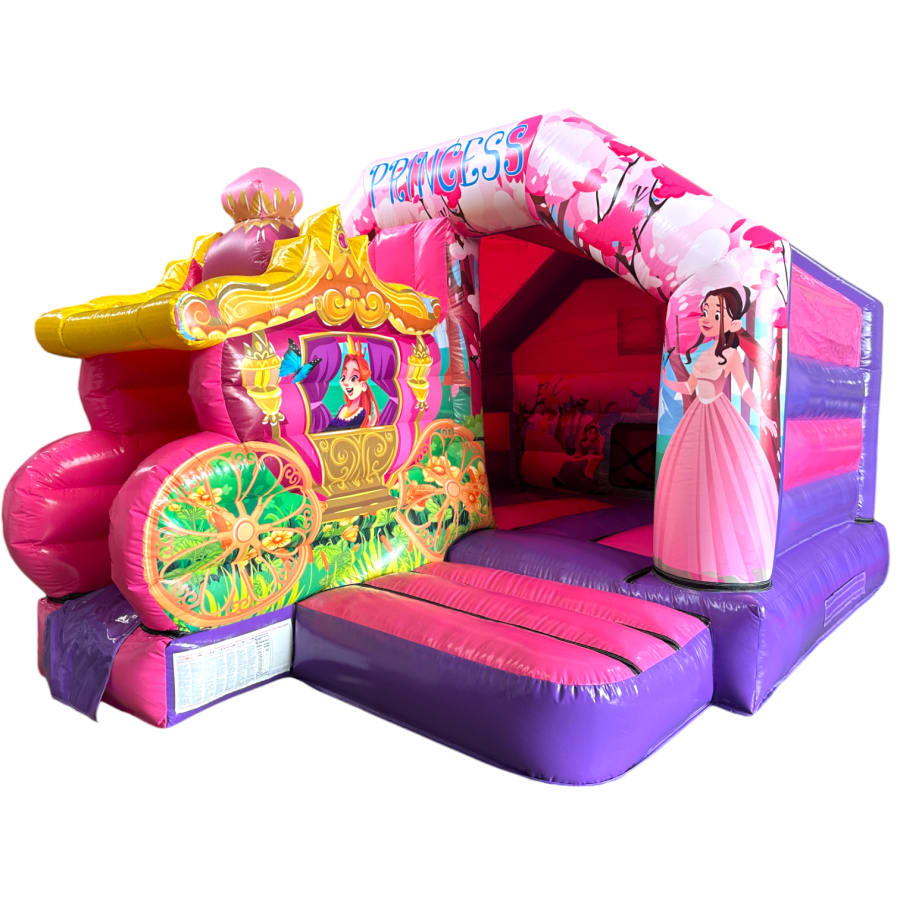 3D bouncy castle, bouncy castle combo, Princess carriage inflatable, inflatable with slide, 3D inflatable bouncy castle, kids party inflatable, moonwalk inflatable, funfair themed bouncy castle, bouncy castle hire UK, inflatable slide combo, indoor bouncy castle hire, front slide inflatable, disco-ready bouncy castle
