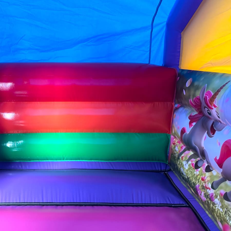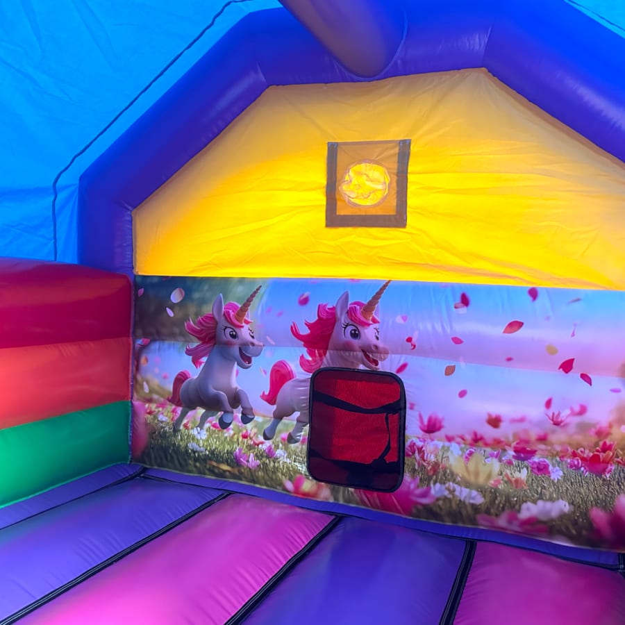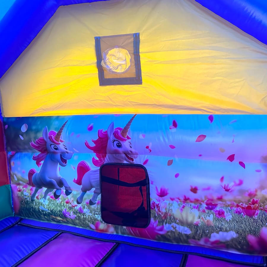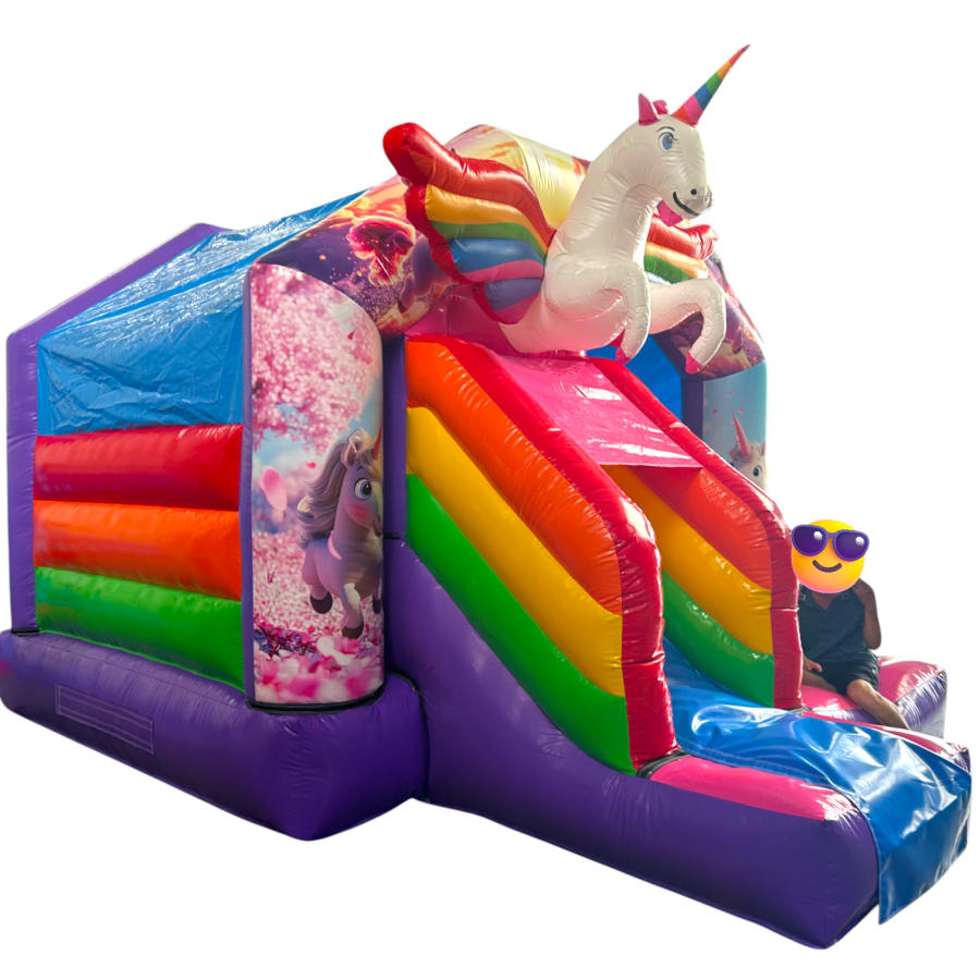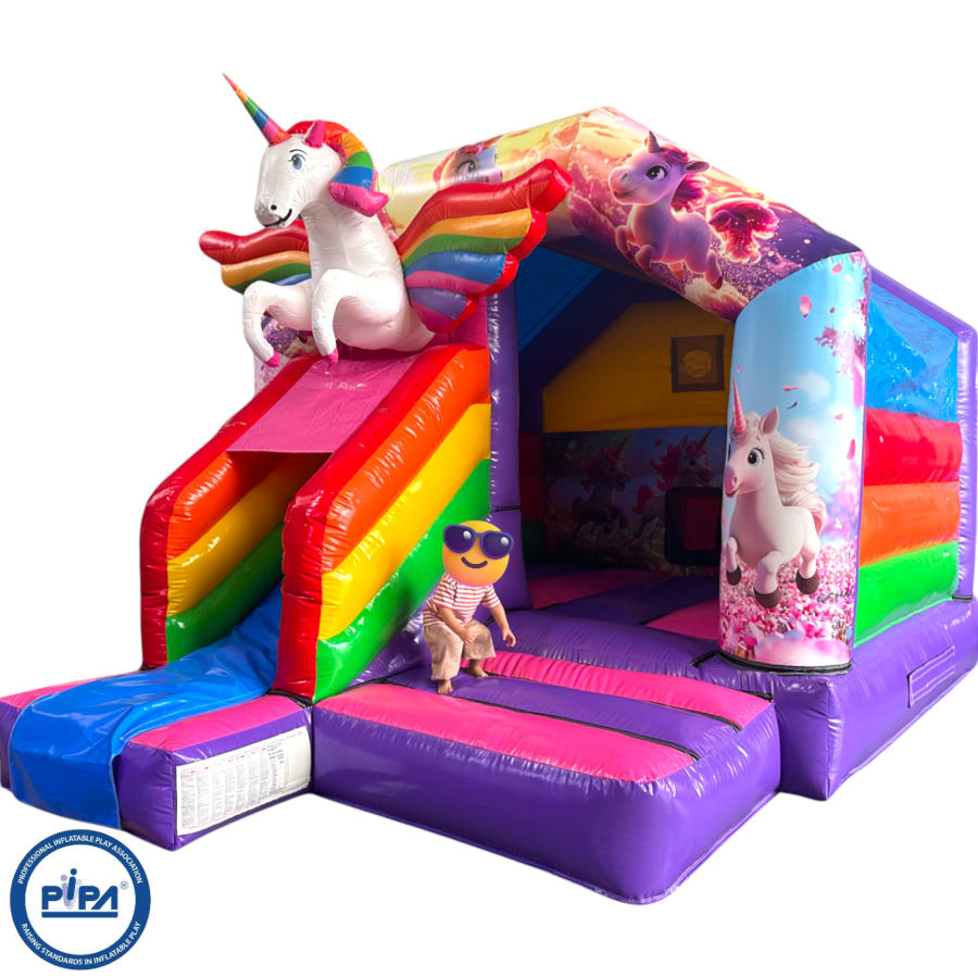 New Epic 3D Low Height Bouncy Castle with Slide - Unicorn Themed Front Slide Combo