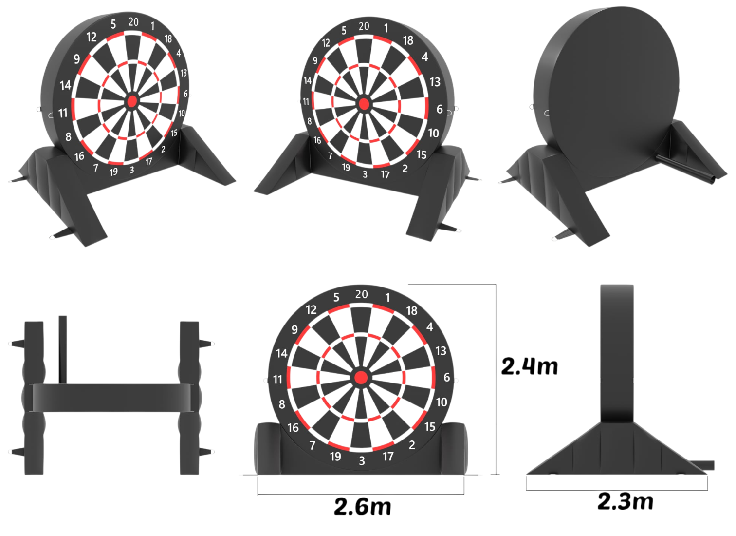 Say goodbye to rigid, hard-to-transport frame units and hello to this lightweight, fully inflatable velcro dartboard, standing an impressive 8ft tall. Its bold, high-contrast design is easy to see from a distance and draws in crowds of all ages – while the inflatable construction makes it quick to set up, store, and move.