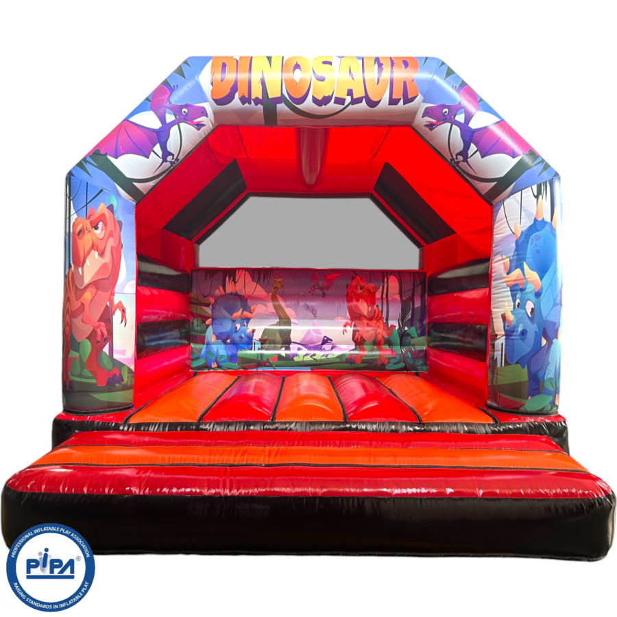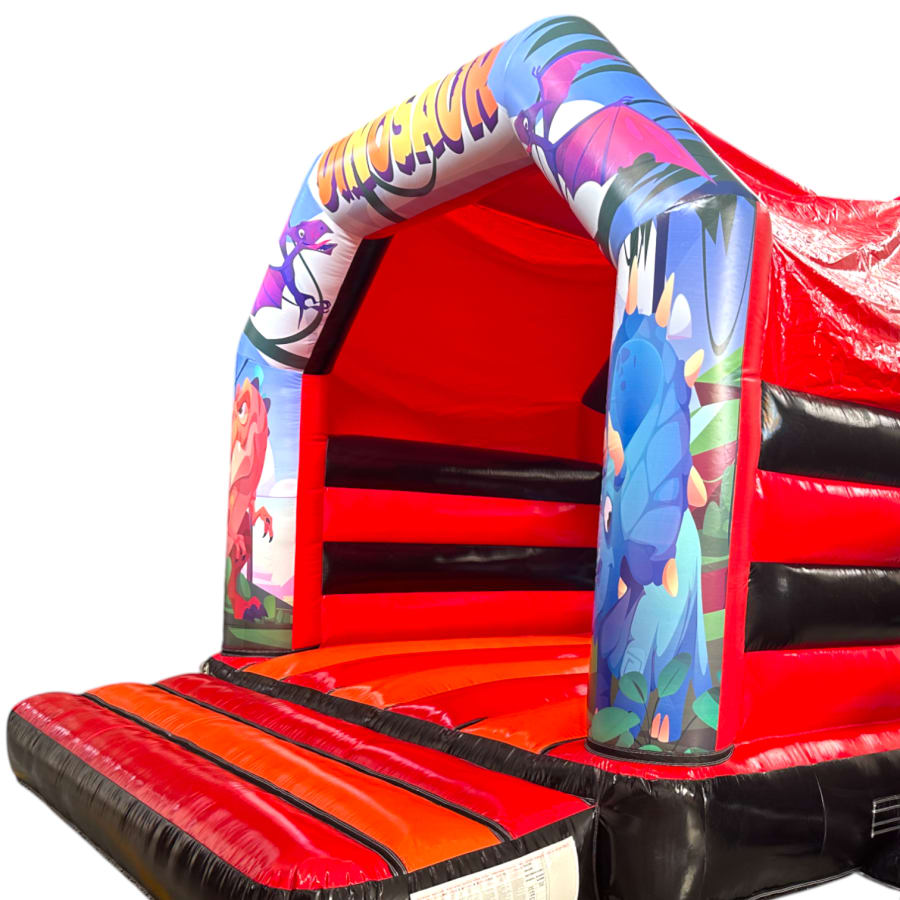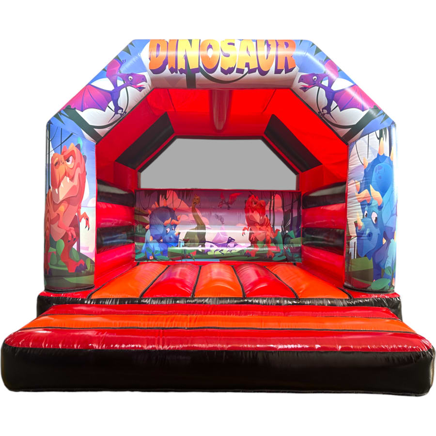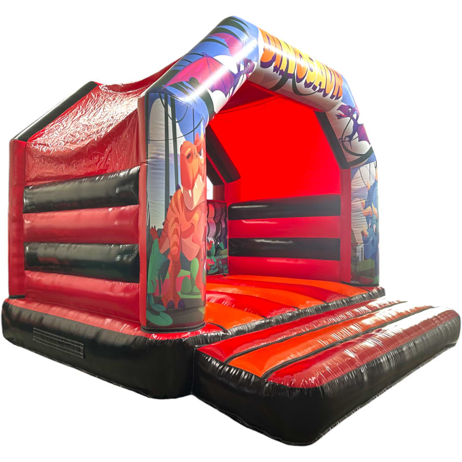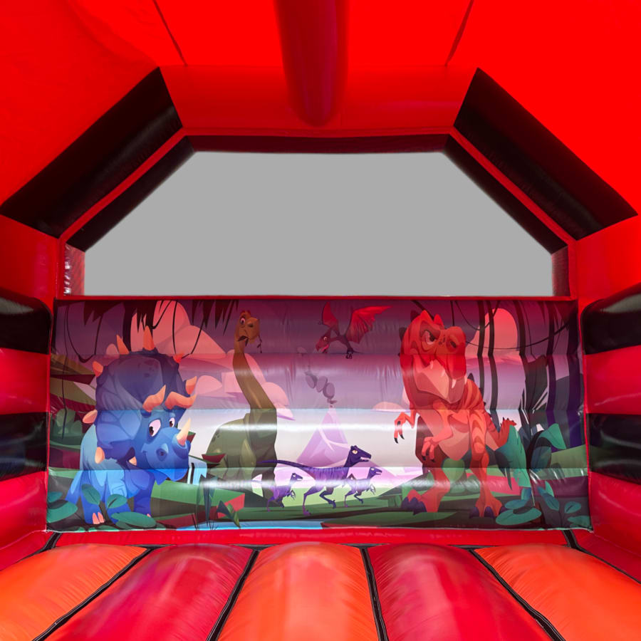 Here is our fantastic 15x15ft Dinosaur Bouncy Castle. Our 15x15 Dinosaur bouncy castle is fantastic for any party, venue or occasion. The Dinosaur Castle is a great size and at only 11.5ft tall, it's ideal for both indoor or outdoor events. This Dinosaur bouncy castle will keep children entertained for hours, leaving you to be able to sit back and watch the little Monsters in the makings bounce, play, laugh, have fun and enjoy their day. The Dinosaur bounce castle artwork is both bold and bright with very realistic and absolutely fantastic quality images, ensuring the Dinosaur bouncy castle perfect for any party or event.