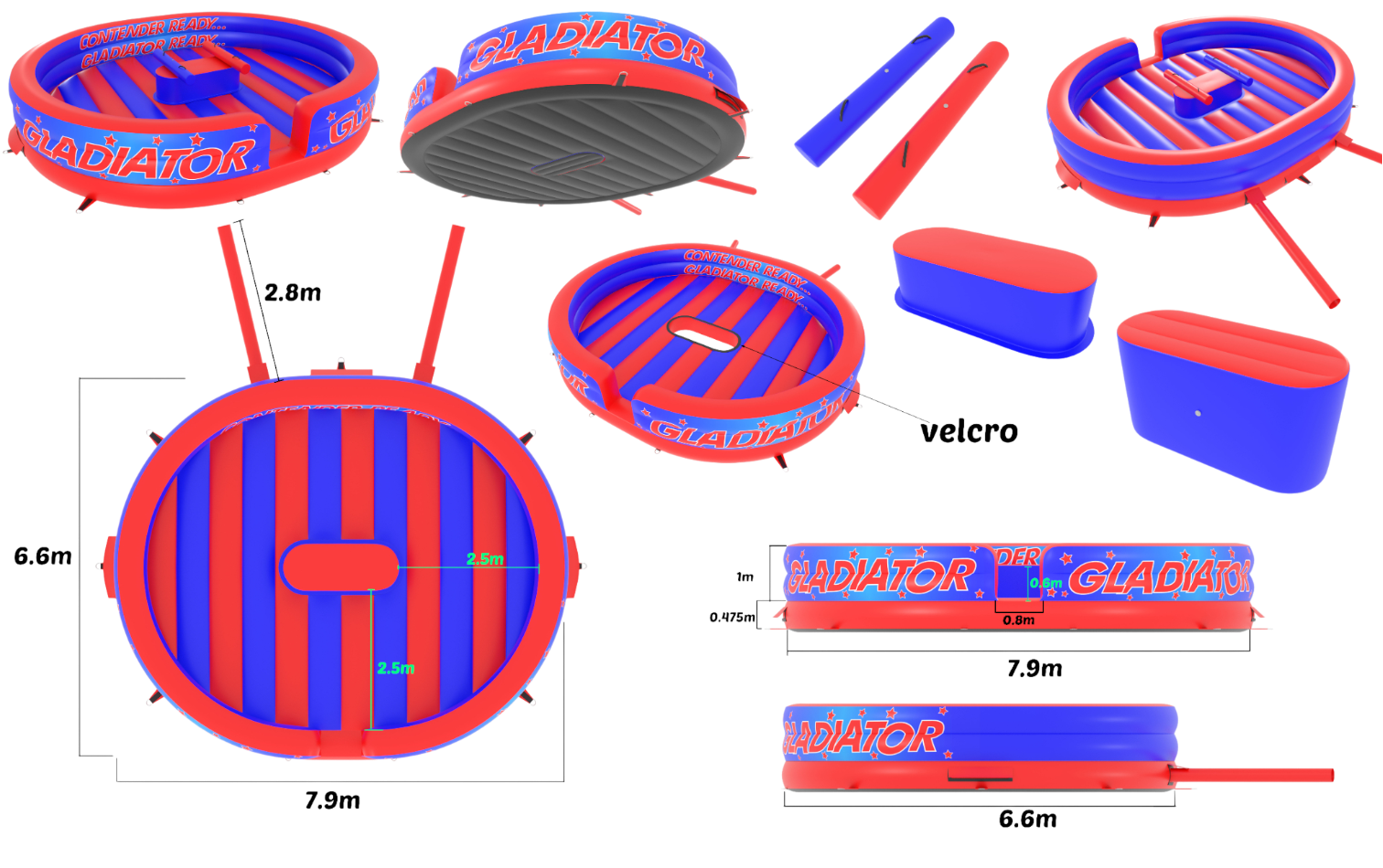 This gladiator duel is not just about power — it’s a game of skill, agility, and strategy. Even the smallest or quickest player can triumph with the right balance and timing! The inflatable’s compact yet impressive size ensures it fits into most halls, gyms, or outdoor venues while still standing out from afar.