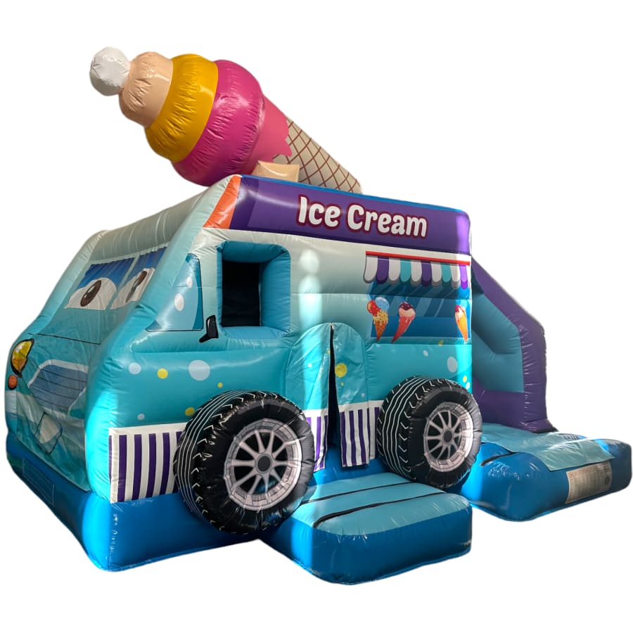 Get ready for one of the coolest additions to your hire fleet — the 3D Ice Cream Van Multiplay Inflatable with slide!