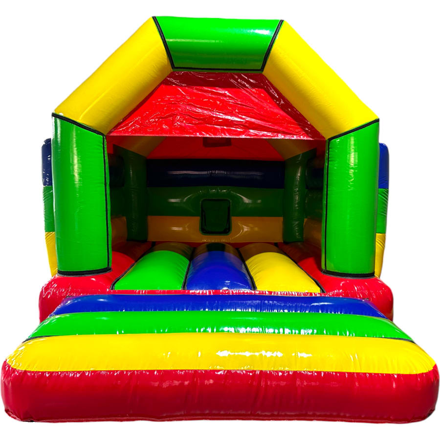 The BBOL-237 is the all new evolution of the classic icon of British inflatable that is the 11x15ft A frame bouncy castle. The 11x15 has historically been the very foundation for any hire company operating in the UK. The 11x15ft castle is the perfect size for almost all back gardens and is suitable for indoor use. This season it just got a whole lot better. The all new 11x15 bouncy castle has had the external walls moved out to make it wider, The step reduced and bounce area increased to make it deeper, The walls sewn in flat for extra strength, durability and to ensure its suitable for any height user. The bed had been reinforced with webbing n both planes and the walls have been flat stitched for extra durability.