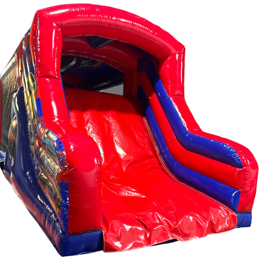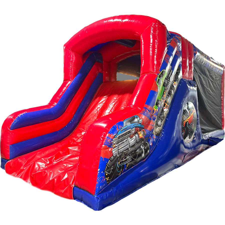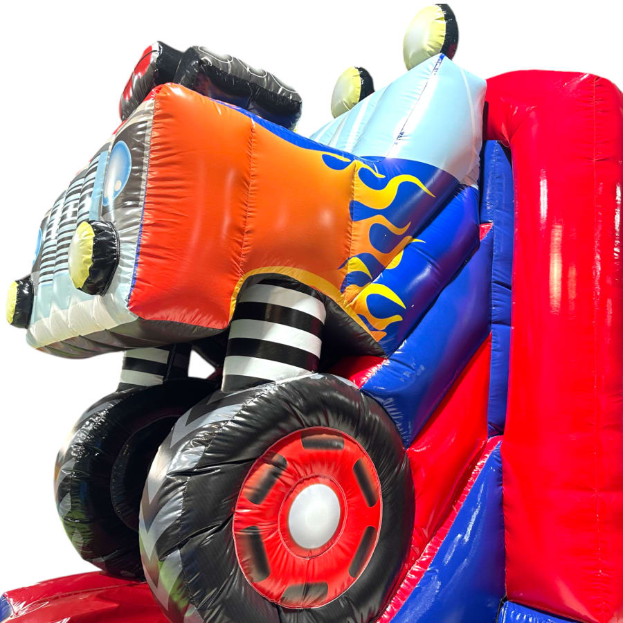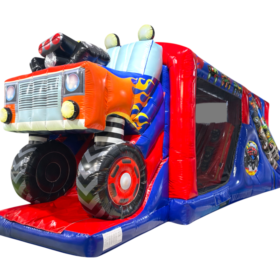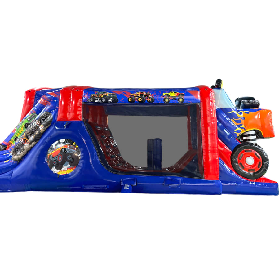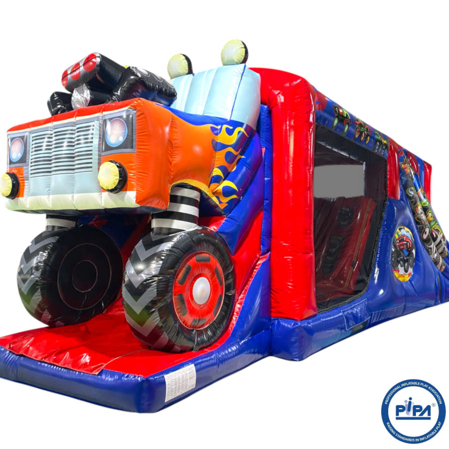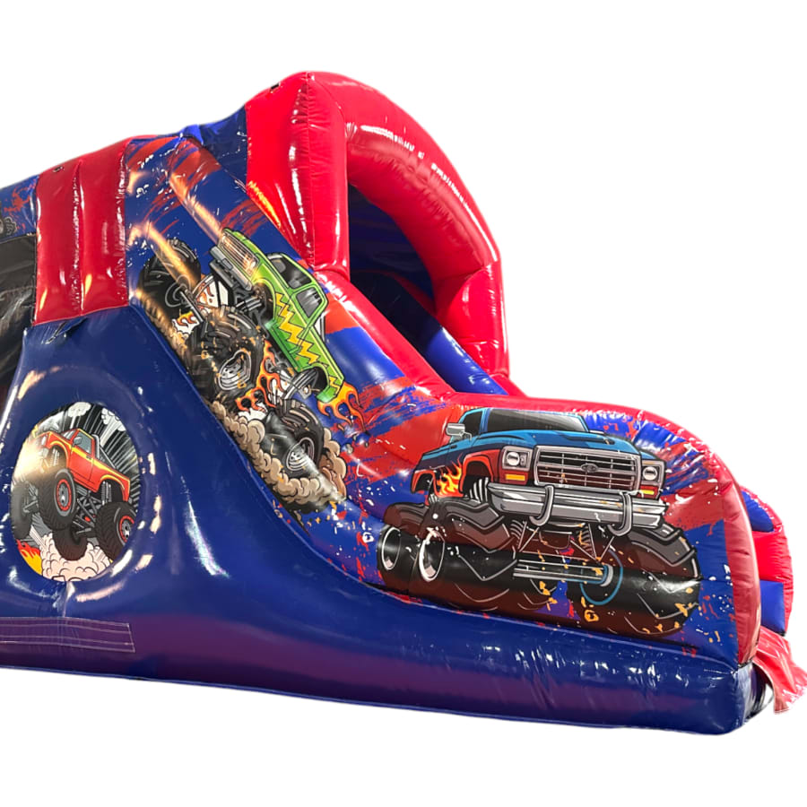The Monster Truck Fun Run / Mini Obstacle Course measures an impressive 28ft in length and has been designed to deliver maximum visual impact alongside high-performance usability. Featuring a giant 3D monster truck front end and fully themed monster truck arena graphics, this unit is a true standout piece that instantly attracts attention at any event. The vibrant, high-quality artwork creates a realistic monster truck experience that is hugely popular with children while remaining eye-catching for all ages.