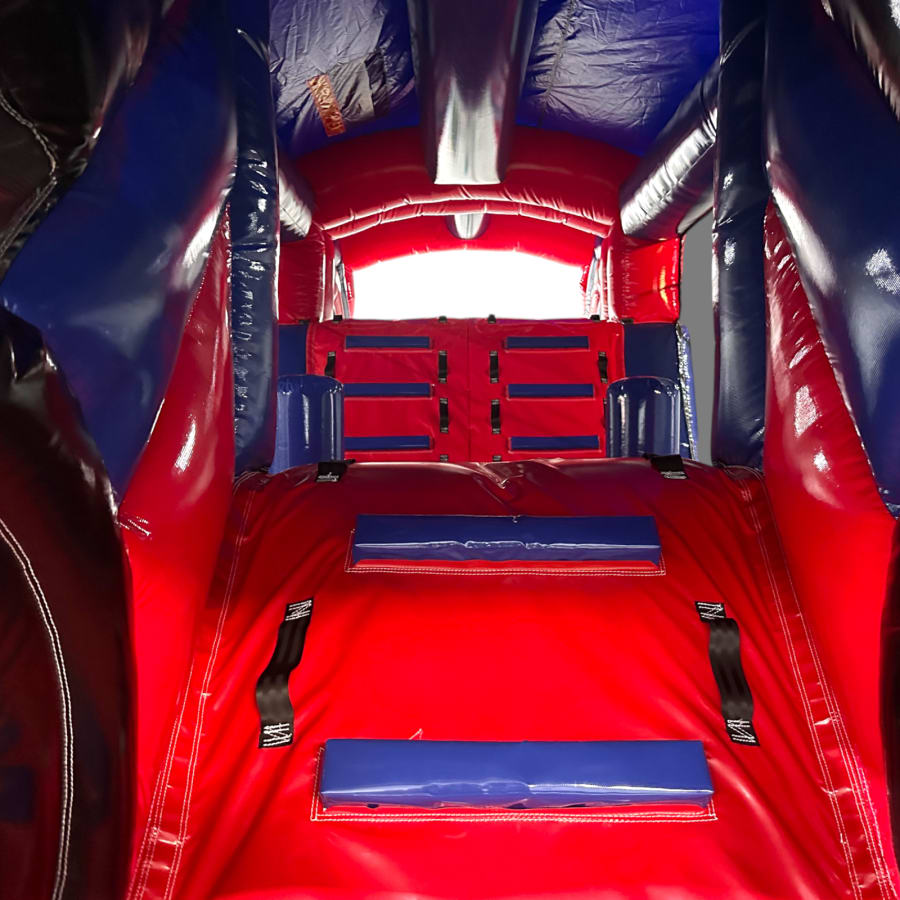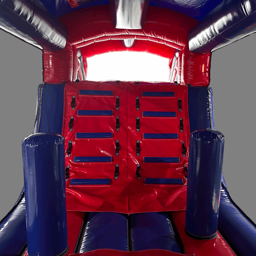 The netted side walls allow for easy supervision from all angles, ensuring maximum safety while maintaining excellent visibility and airflow. Suitable for both indoor and outdoor hire, this unit performs reliably across a wide range of venues and event types.