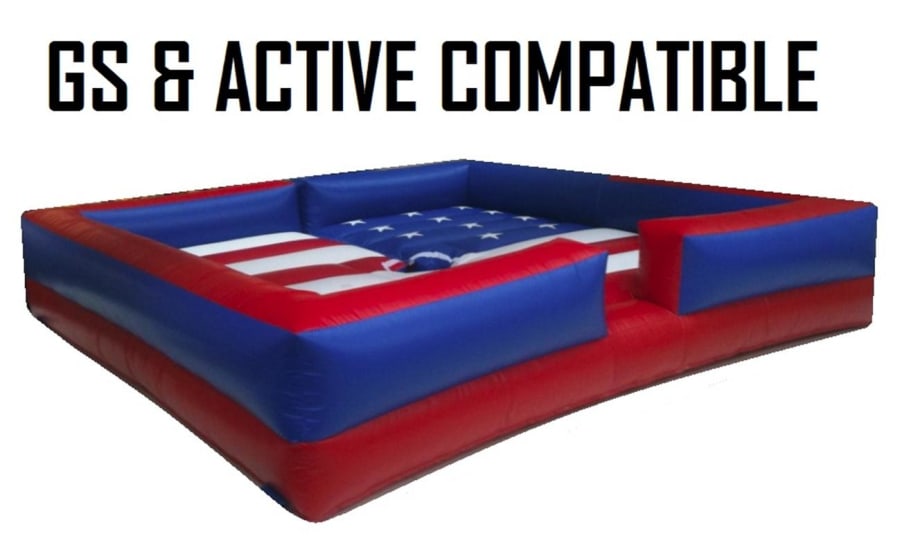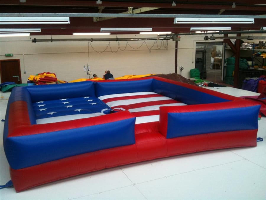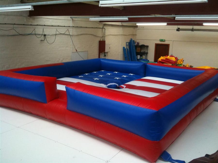 This Rodeo machine bed does exactly what it says on the tin! Perfectly designed with maximum safety in mind, The inflatable stars and stripes bed is designed to run with a Rodeo Bull attachement and is a fantastic competition item thats sure to leave a lasting imnpression with your guests. The bed is supplied as compatible with GS Engineering, Rodeo Sales and Galaxy but other machines can be accomodated if required.