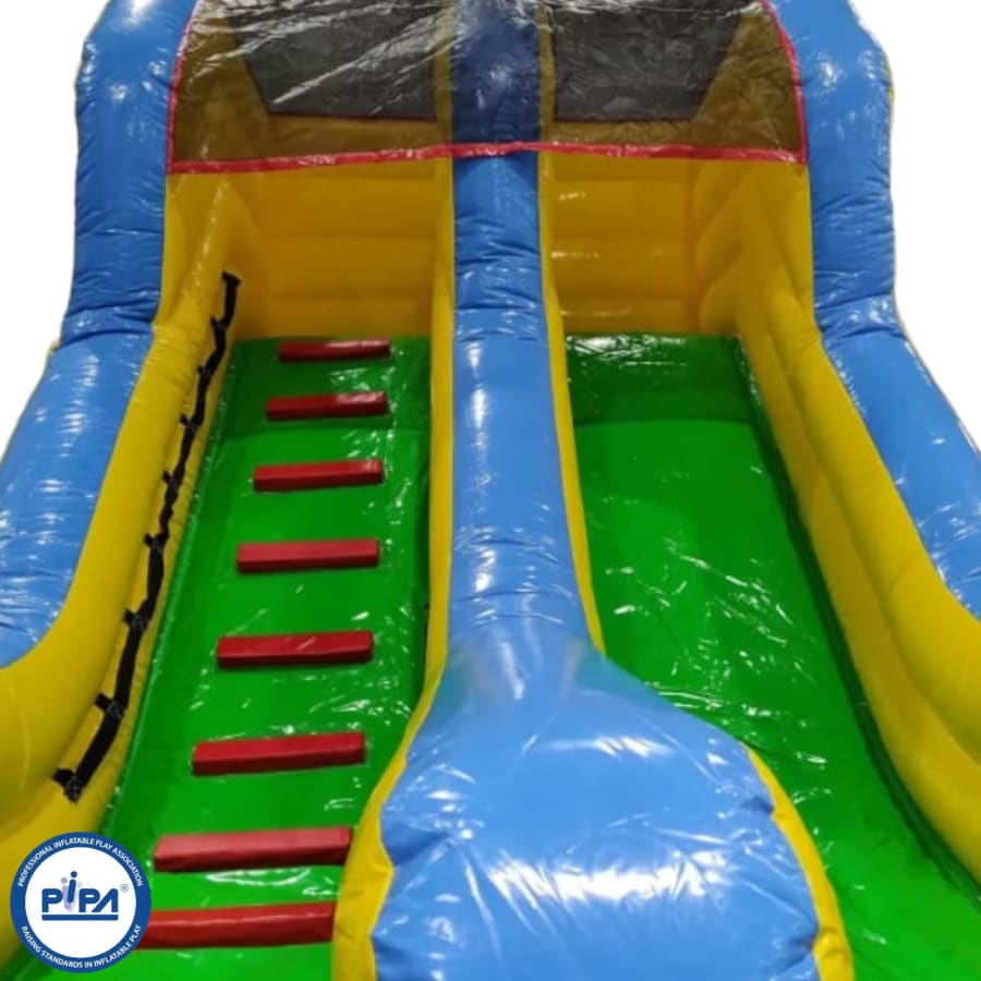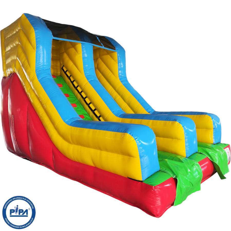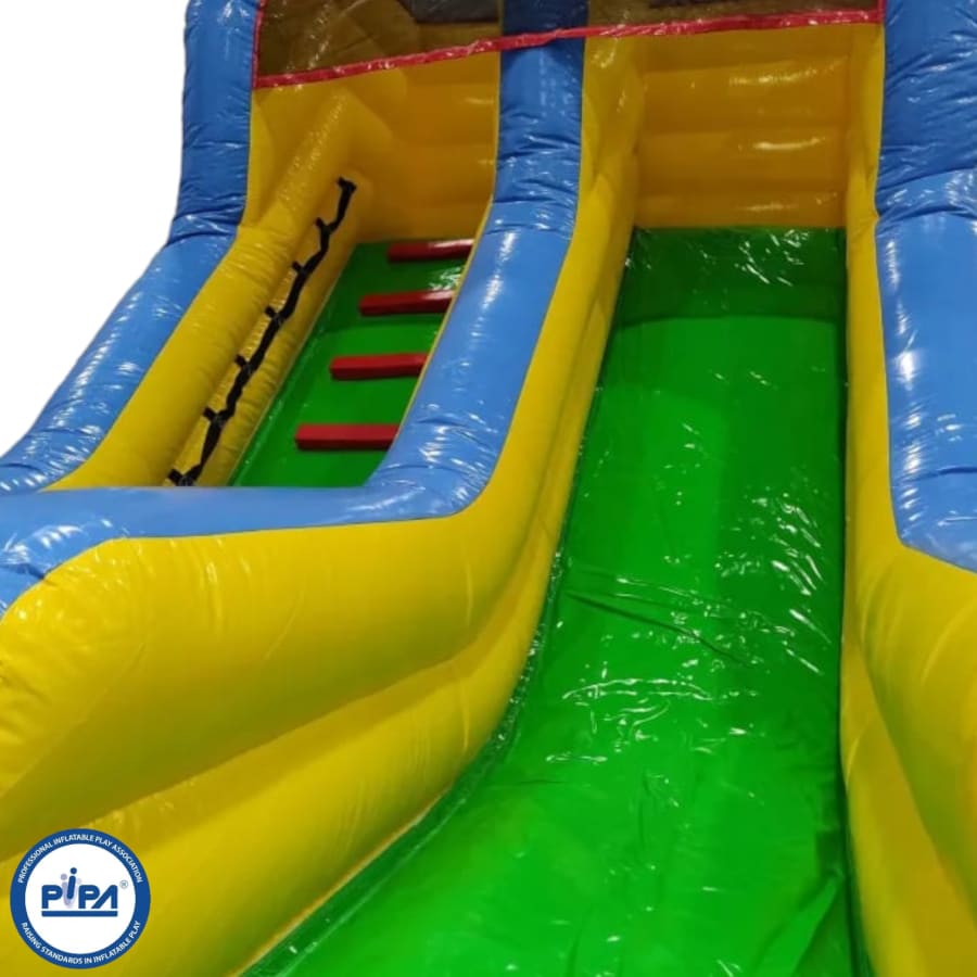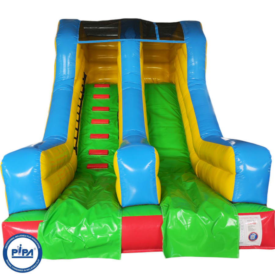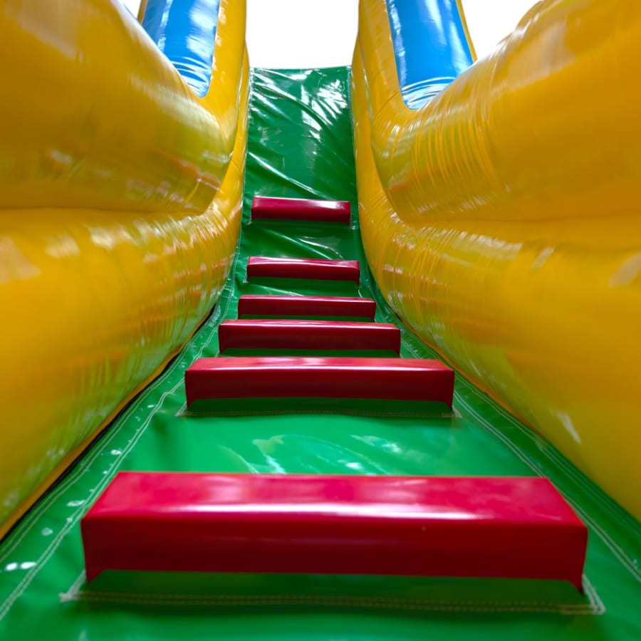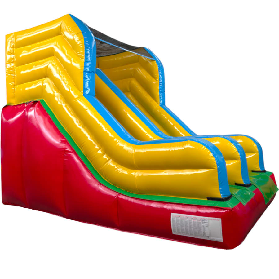 The 8ft platform slide is the perfect intermediate slide for any party, venue or occasion. The children using this slide just love the fact that it's big, bright and bold and gives them a real grown-up feel on their special day. The slide measures 14ft yet is perfect for both indoor and outdoor hire. The colour theme is very bright and absolutely fantastic, ensuring this inflatable slide is perfect to make their big day be everything they dreamed of.