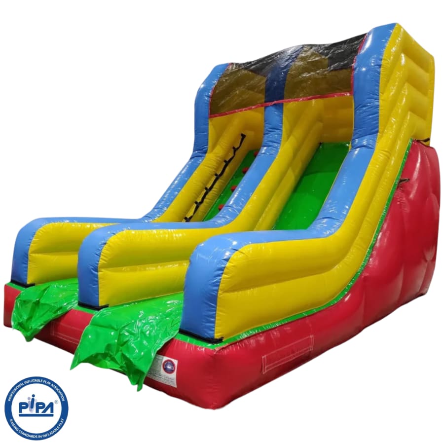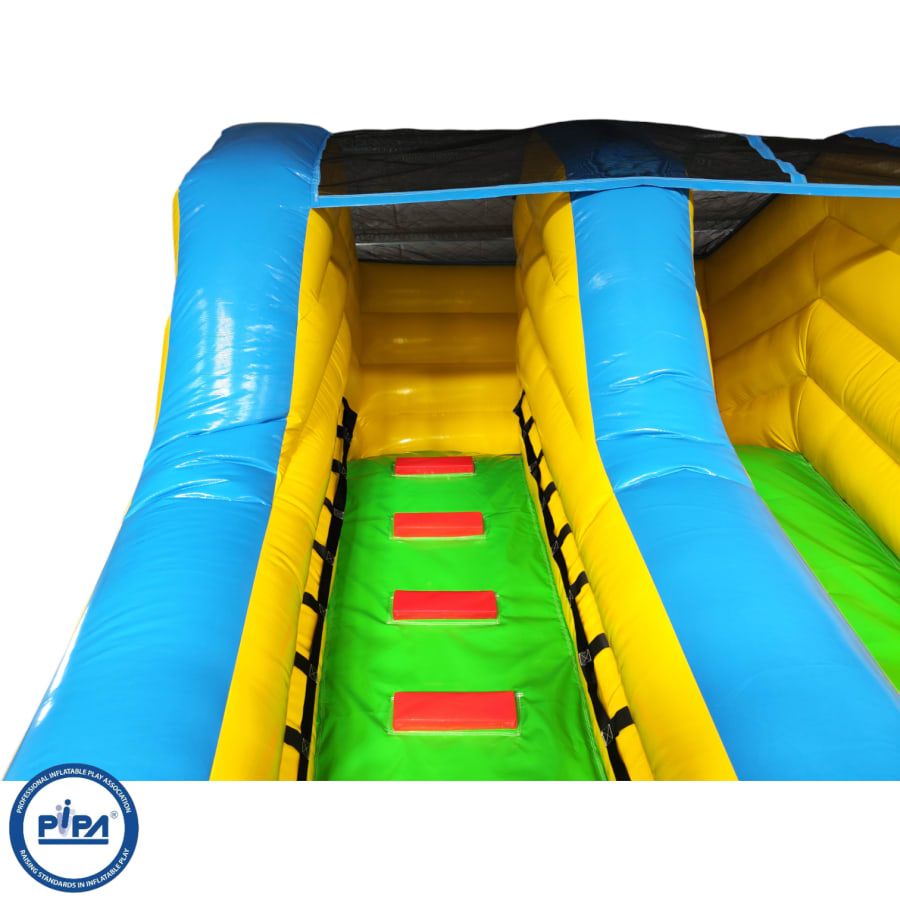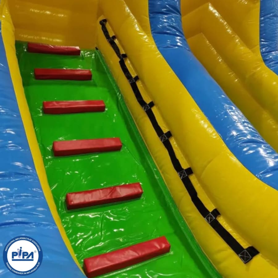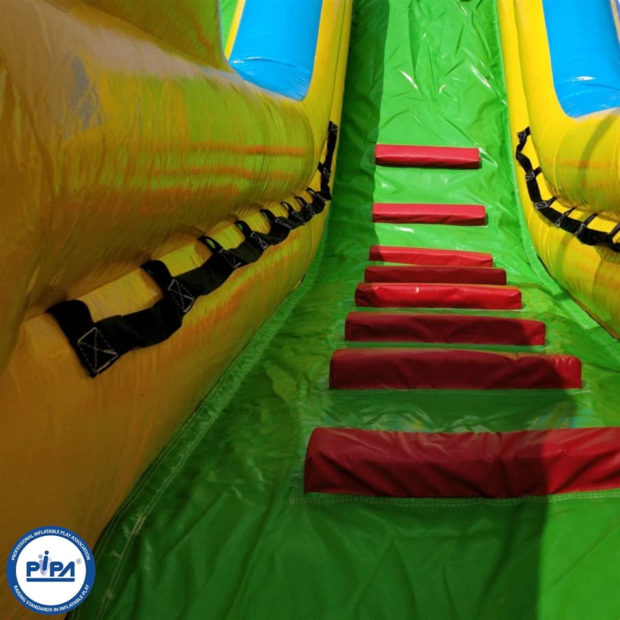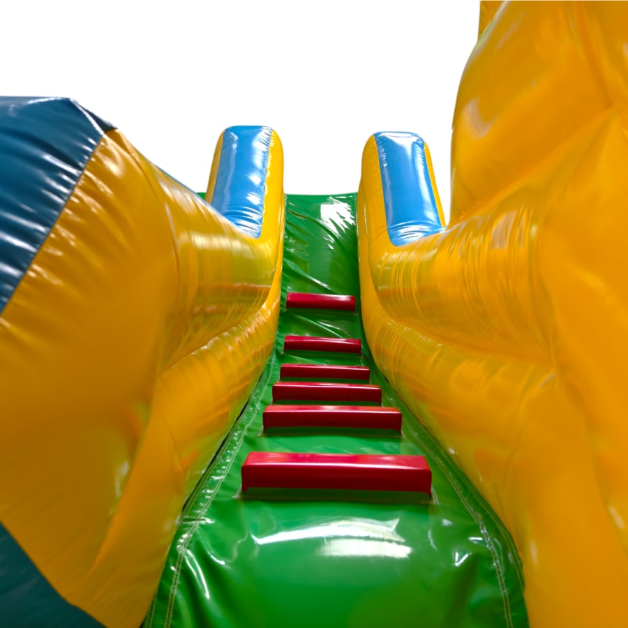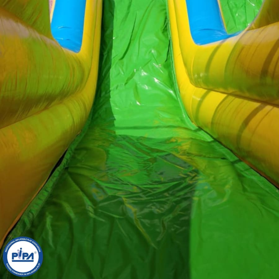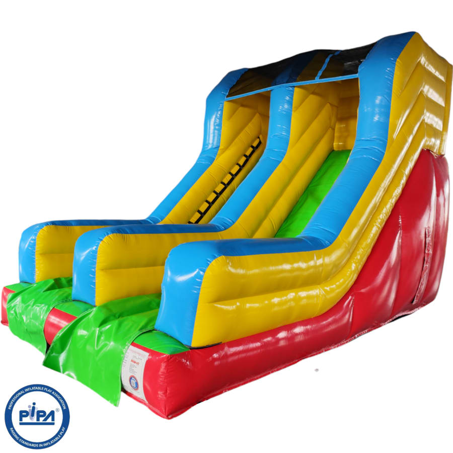 The 8ft platform slide is the perfect intermediate slide for any party, venue or occasion. The children using this slide just love the fact that it's big, bright and bold and gives them a real grown-up feel on their special day. The slide measures 14ft yet is perfect for both indoor and outdoor hire. The colour theme is very bright and absolutely fantastic, ensuring this inflatable slide is perfect to make their big day be everything they dreamed of.